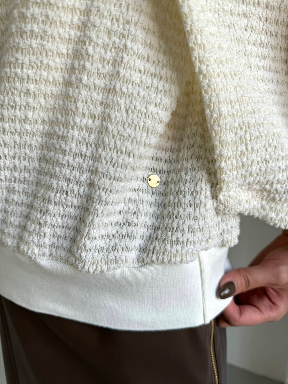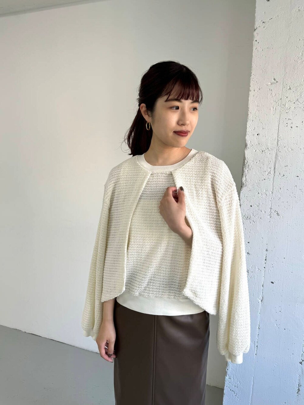 カーディガンを羽織ったような印象のデザインプルオーバー。