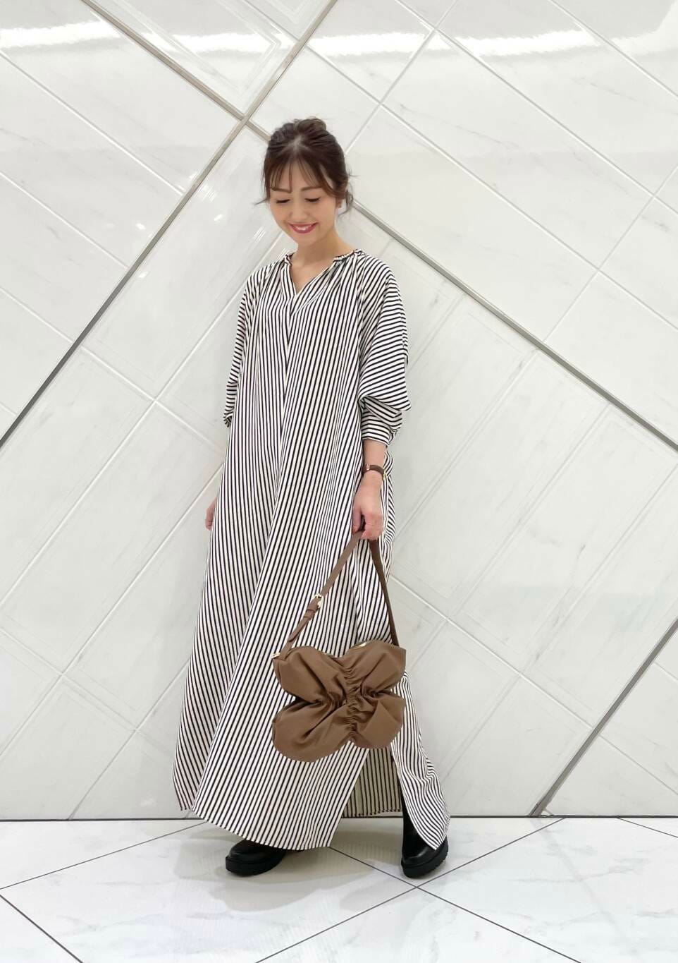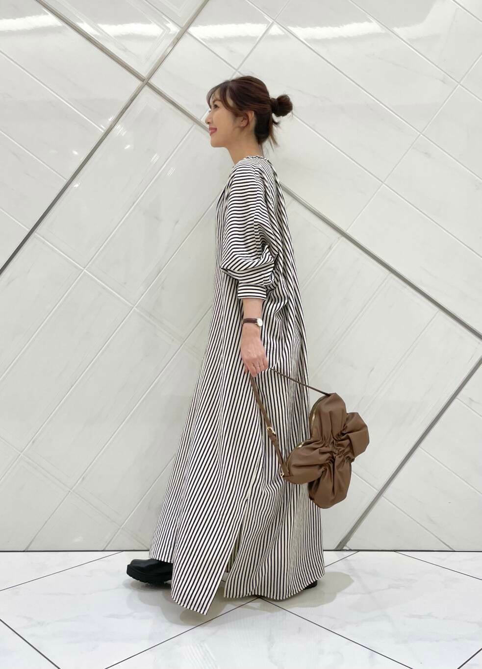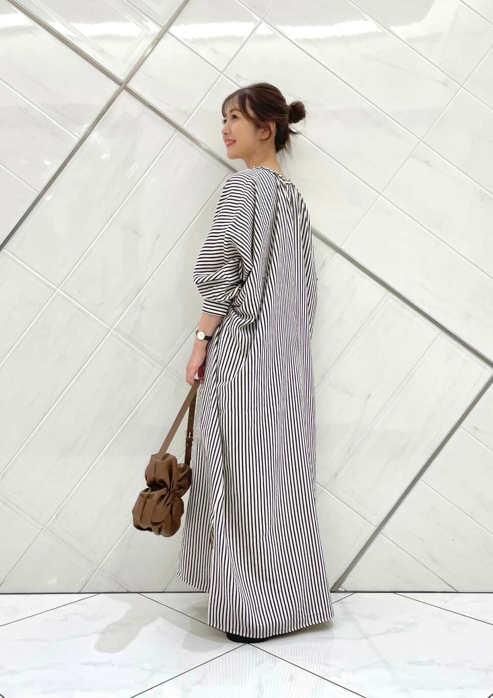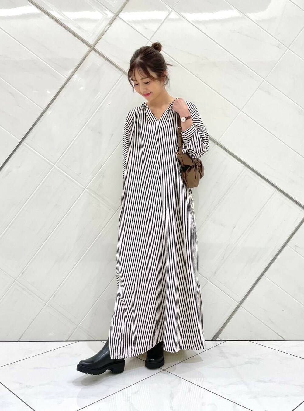 私の身長で床に付くくらいの着丈なので、ブーツを履いて2.3cm上くらいの長さになります。