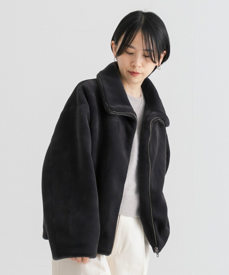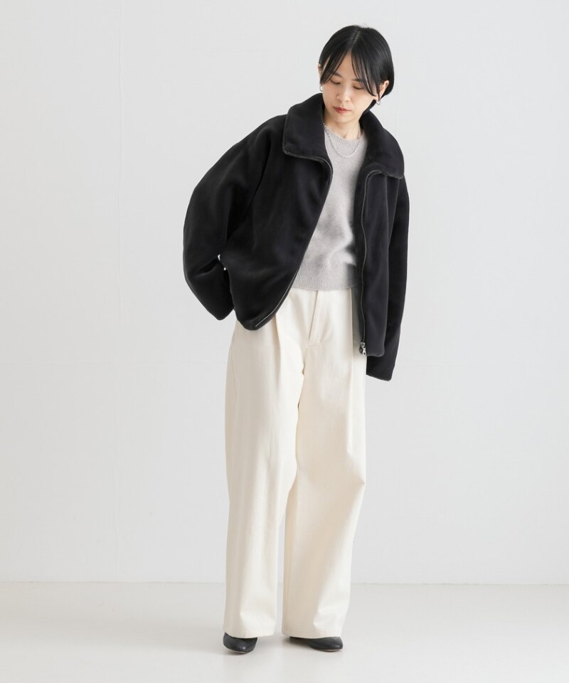 衿までジップを付けることで防寒性の高いスタンドカラーになり、ジップを開けるとシャツカラーのように抜け感のあるデザインにも変化します。