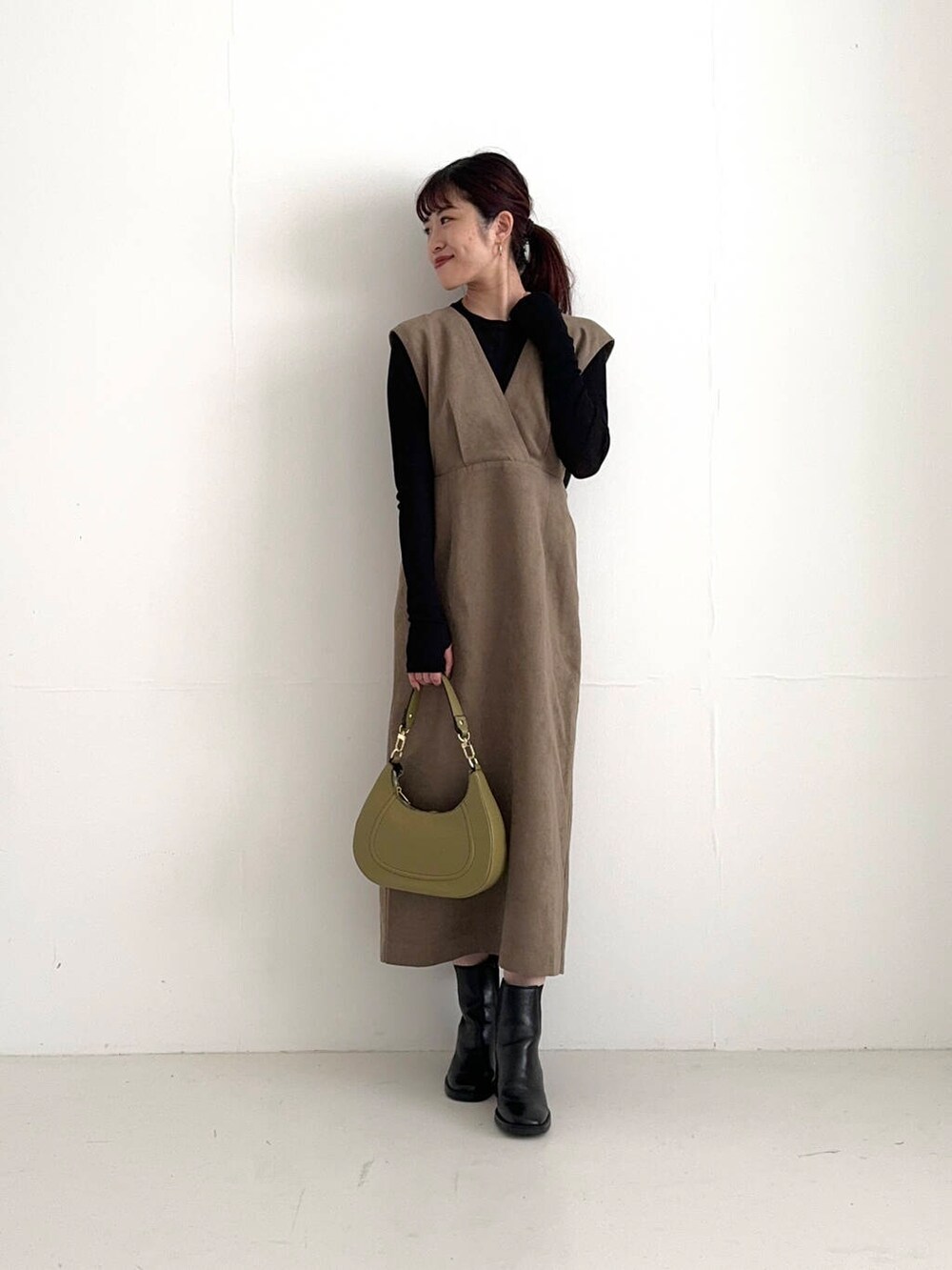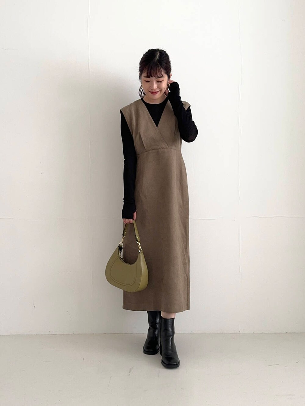 スエードライクな素材感が、秋冬らしい着こなしに。