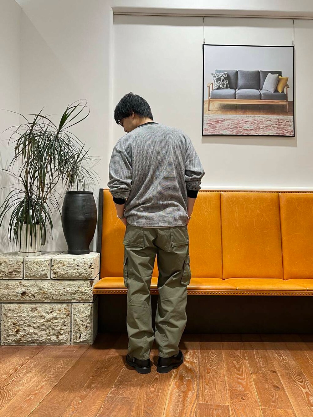 シンプルな合わせですが、ミリタリー商材を取り入れる事で遊び心のある印象に。