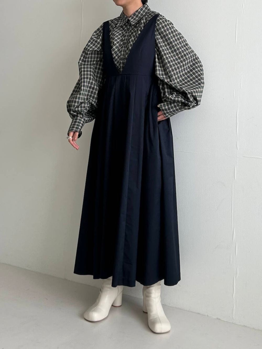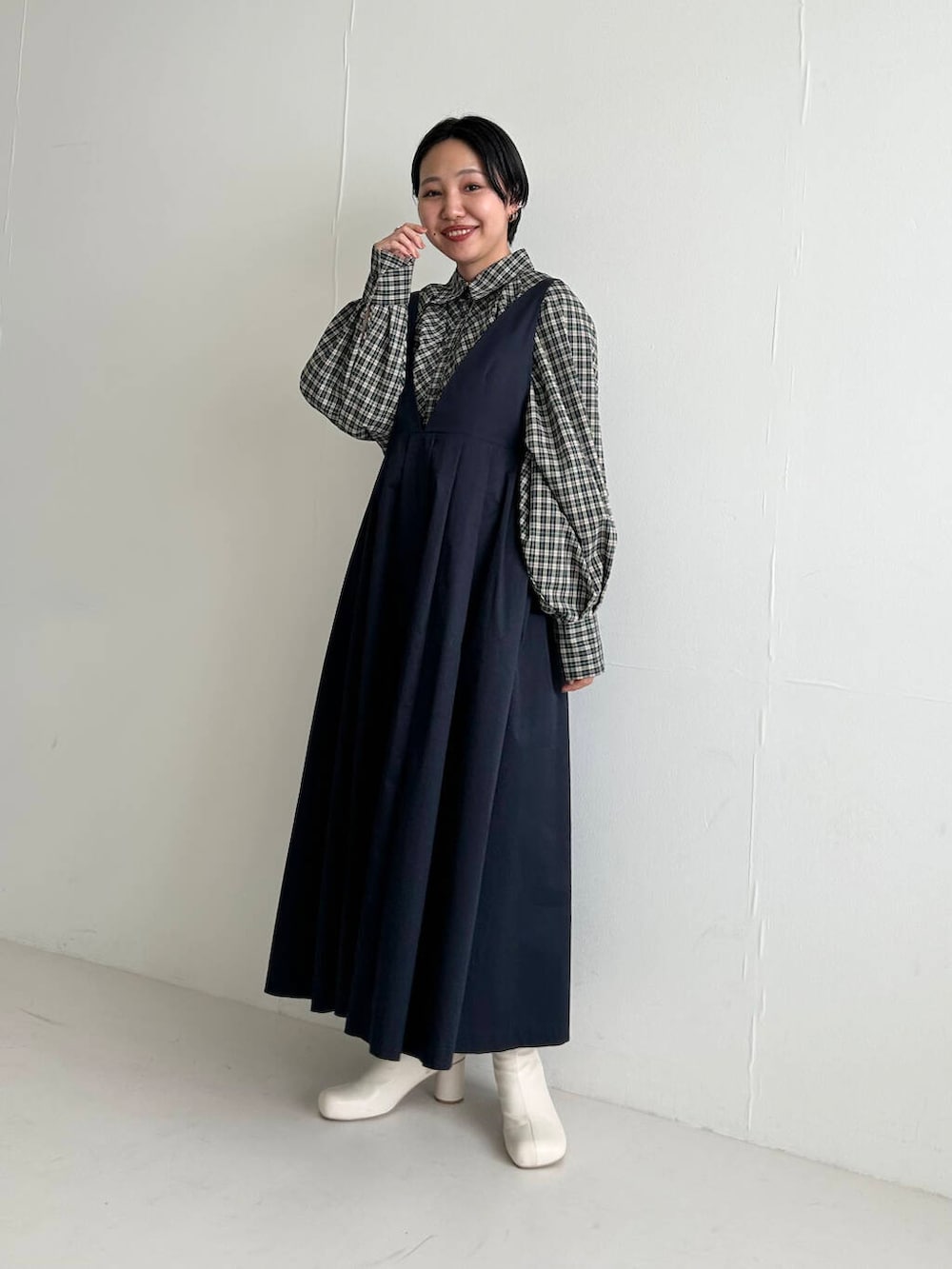 スカート部分はボリューミーですが、前後の抜け感がすっきりした印象にしてくれます🩶