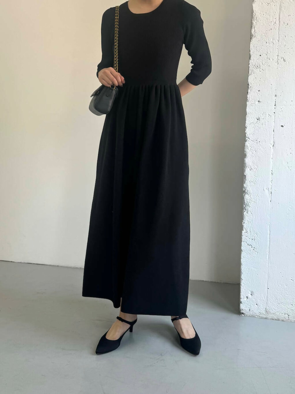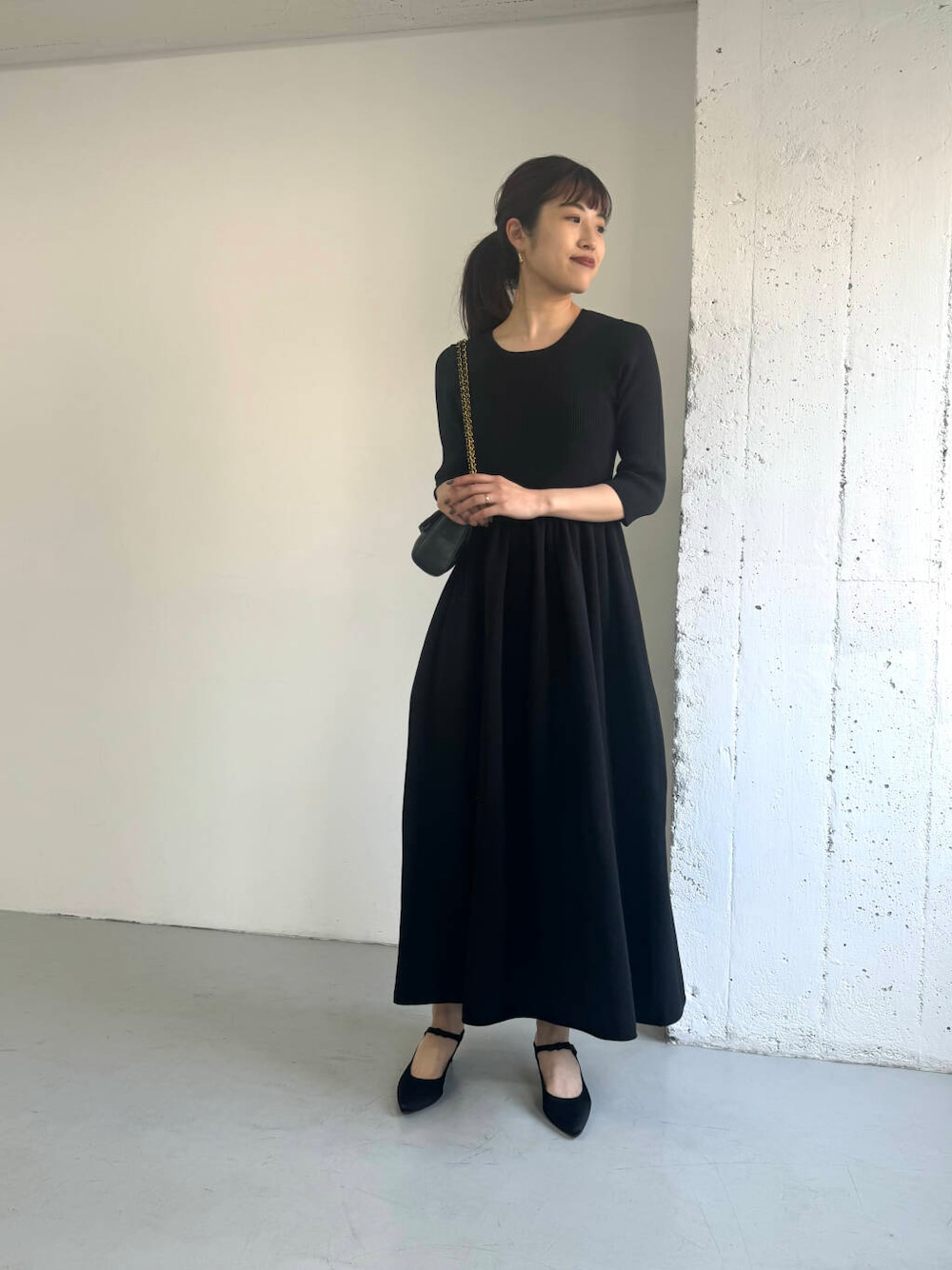 シルエットが大人可愛い、品のあるニットワンピースを着用しました♪
