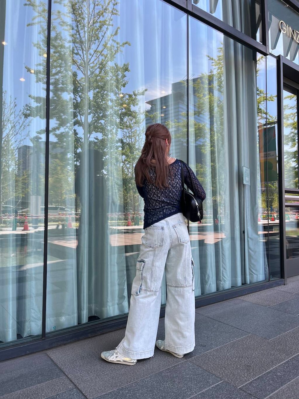 程よく透け感のある可愛いデザインなので、カーゴデニムのようなカジュアルなアイテムと相性抜群です✨