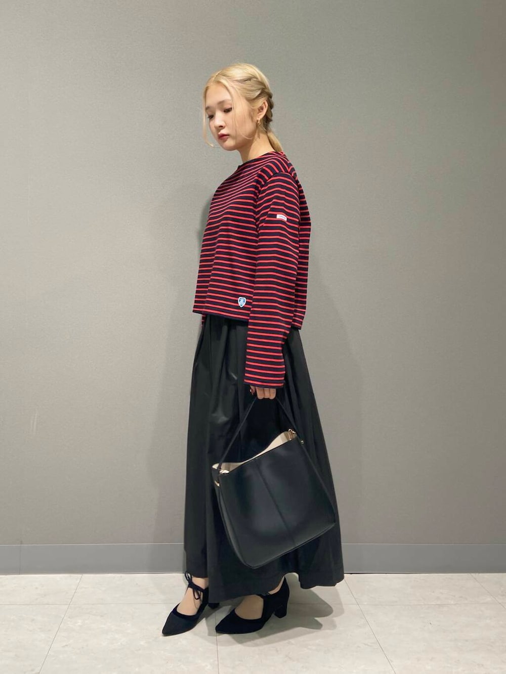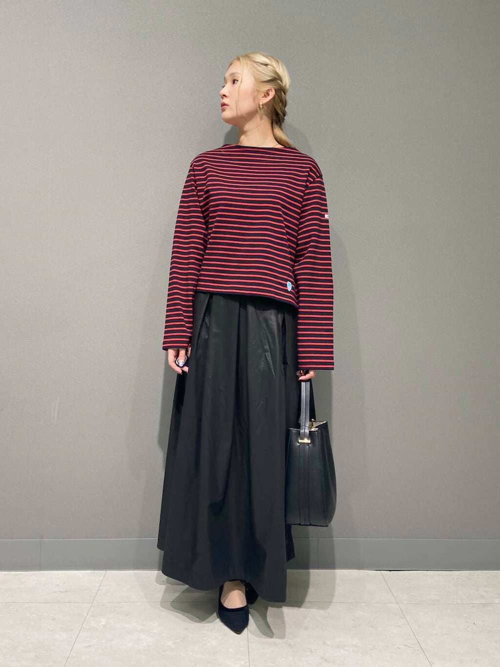 トップスはしっかりとした生地感で丈も長すぎないので広がりのあるスカートや、パンツとも合わせやすいです!