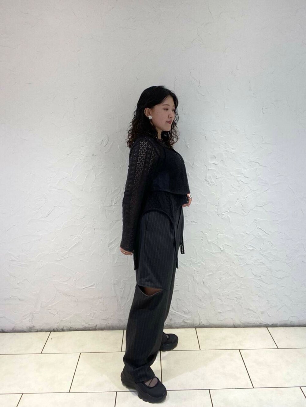 即戦力で使えるレースプルオーバー×膝のスリットが細見えのスラックス💭🩶