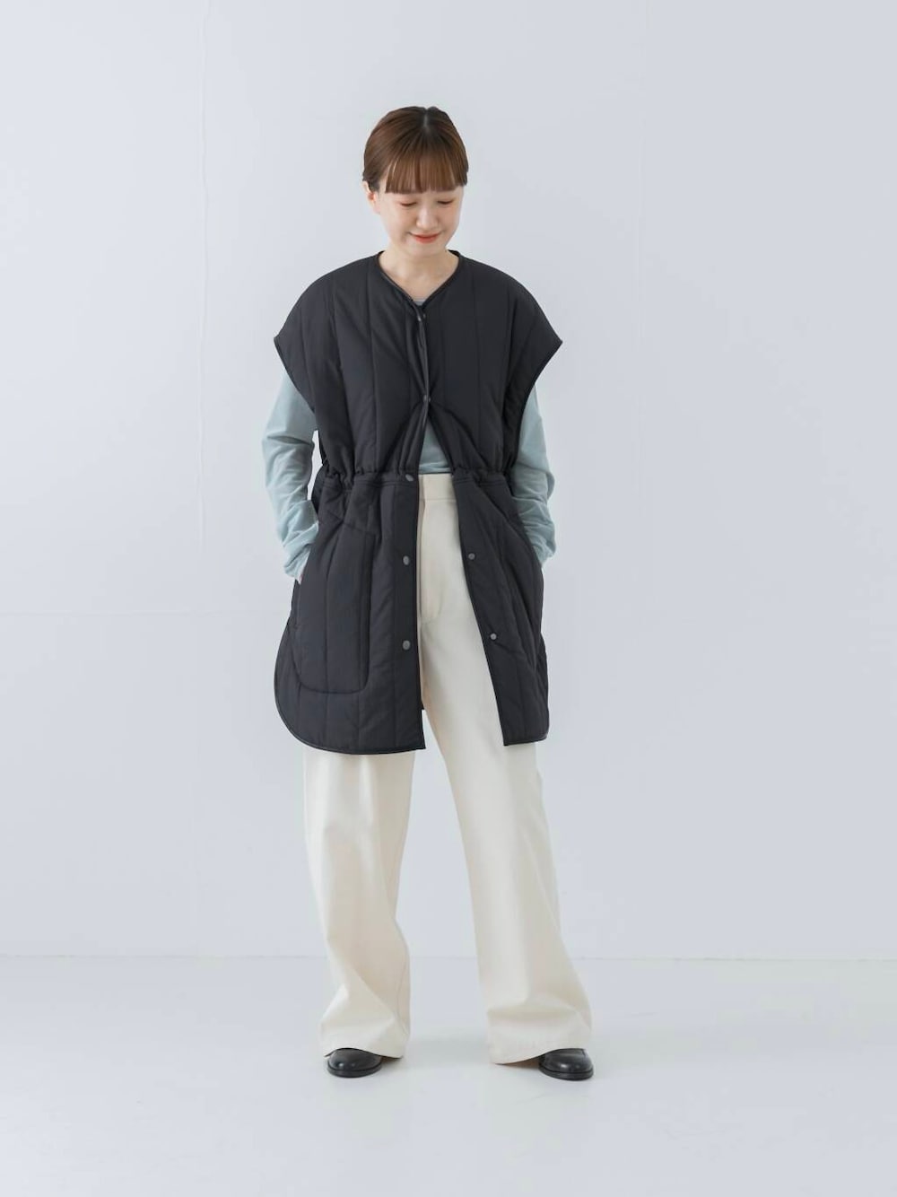 ウエスト部分にドロストがついているので絞って形を変えて色々なスタイリングを楽しめます◎