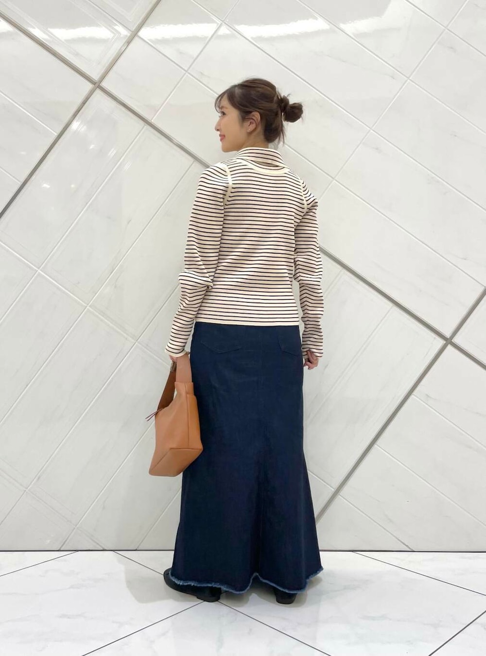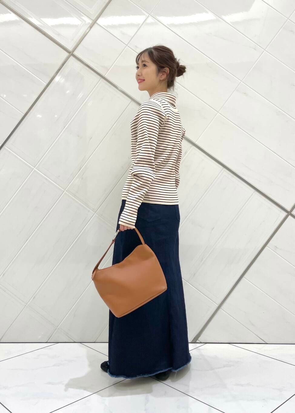 年齢:30代後半,身長:158cm,体型:普通ウェーブ型 アイテム:2WAYタートルリブニット