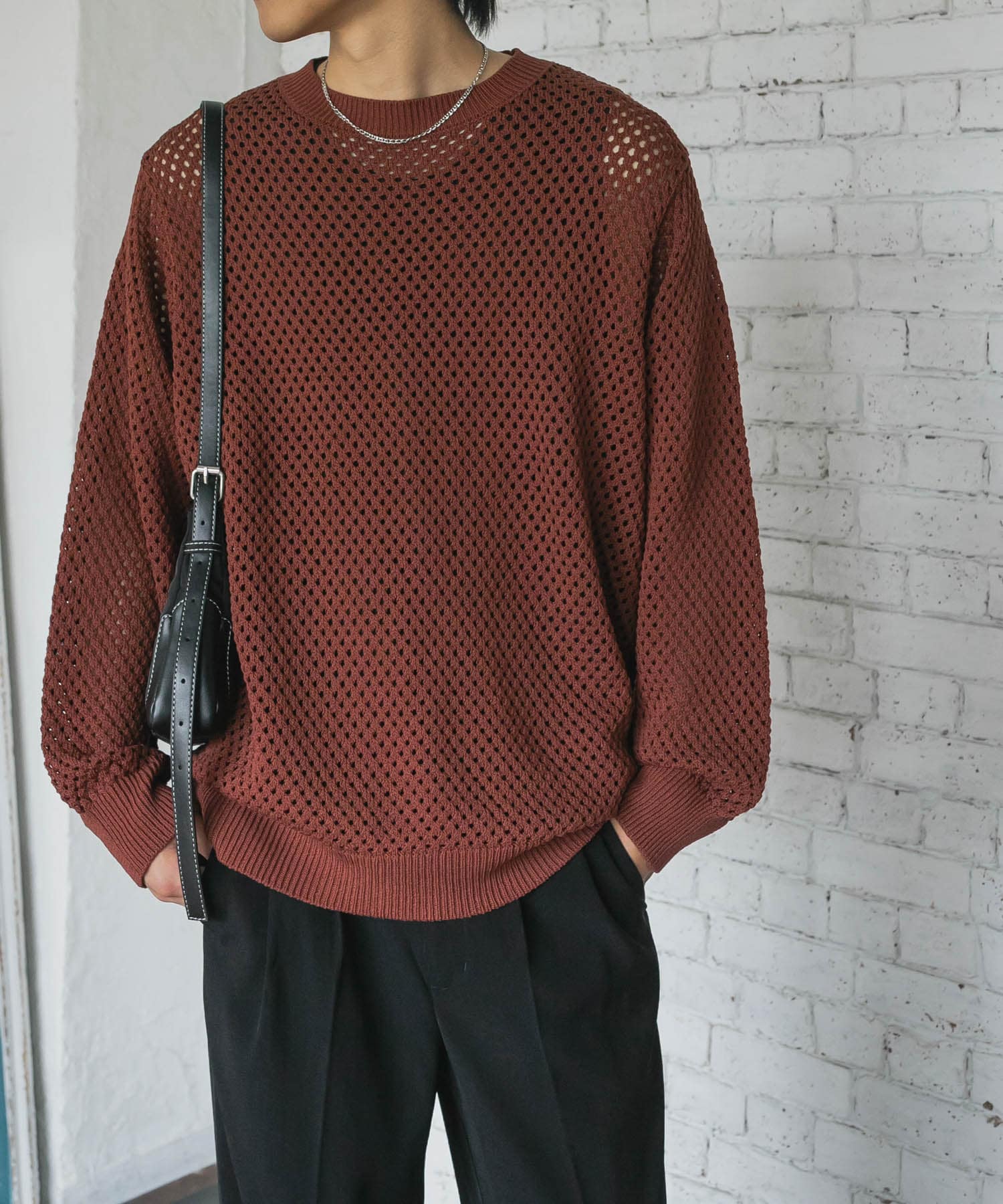 SENSE OF PLACE『洗濯可』シアーメッシュクルーネックニット- カラー: