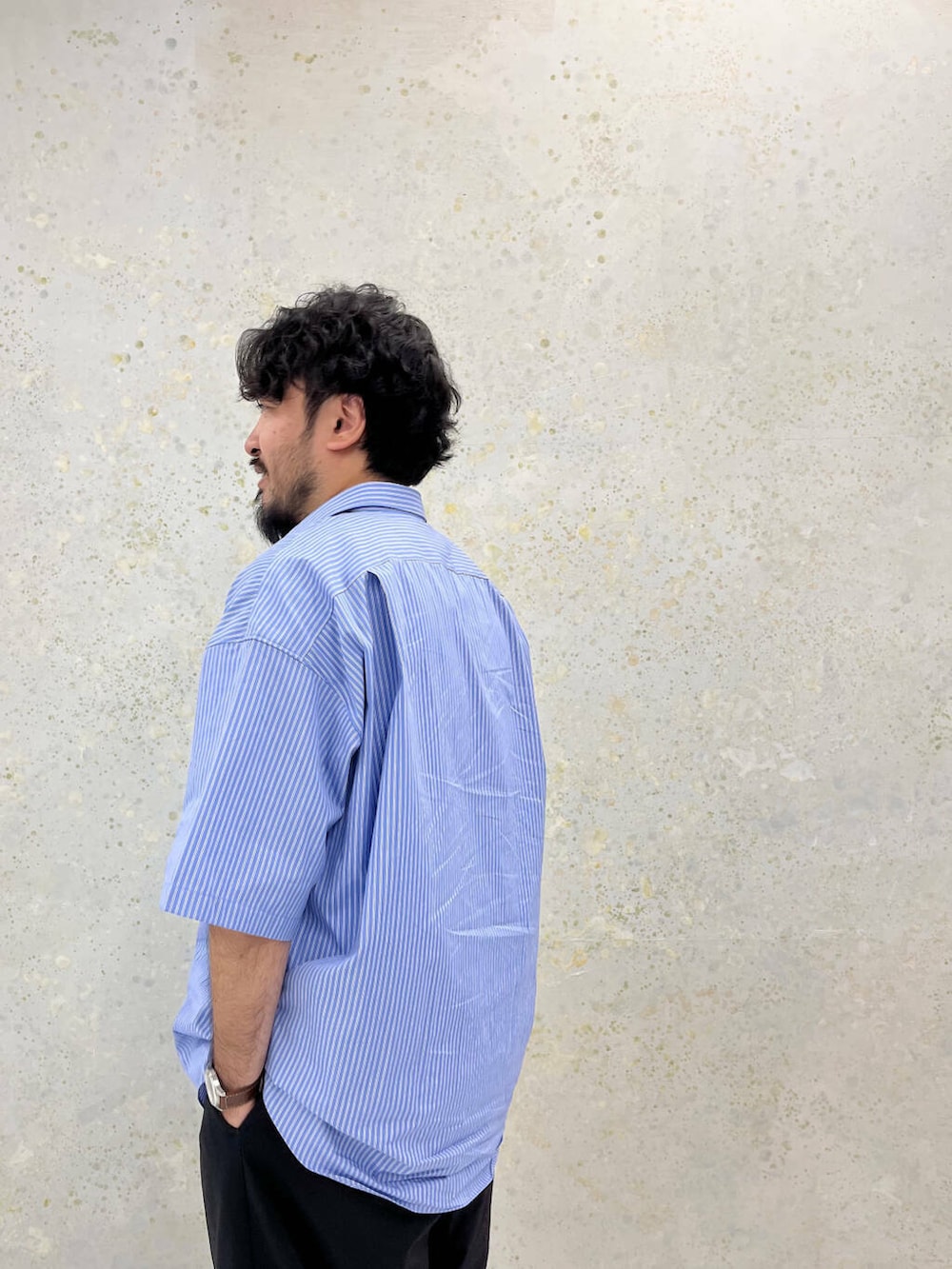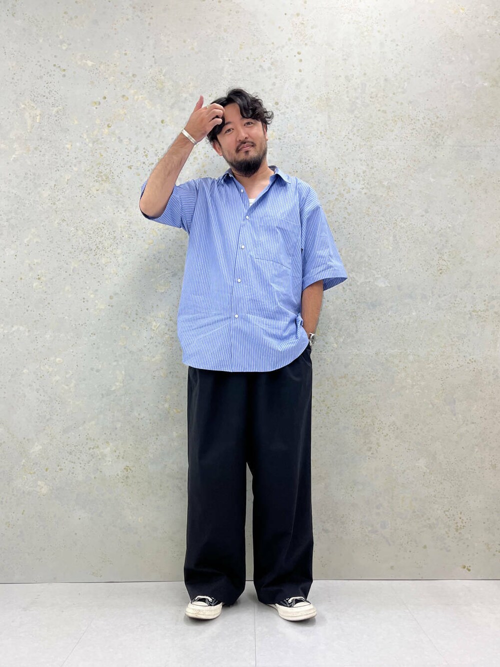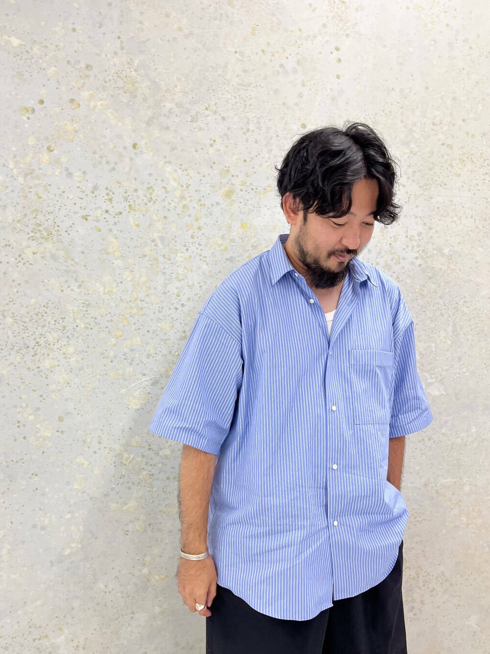 夏はやっぱりブルー系のシャツ着たくなりますね。
