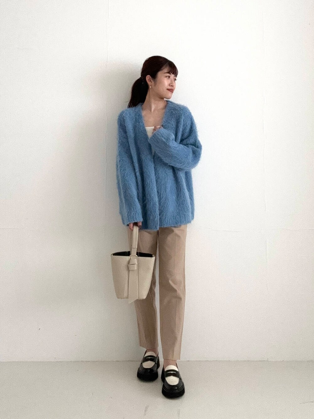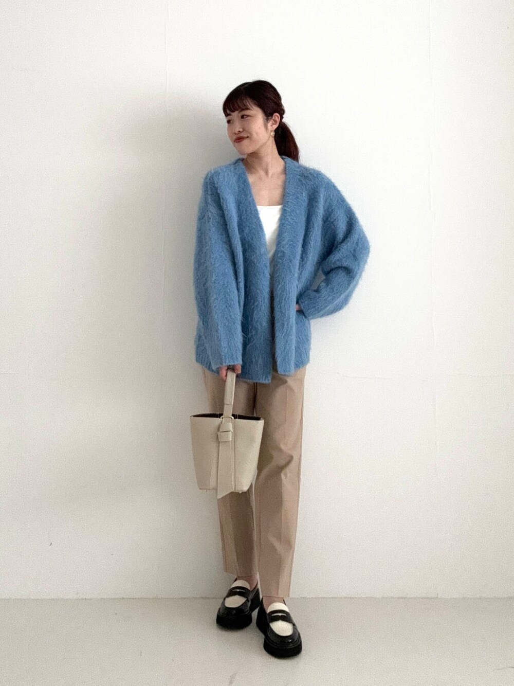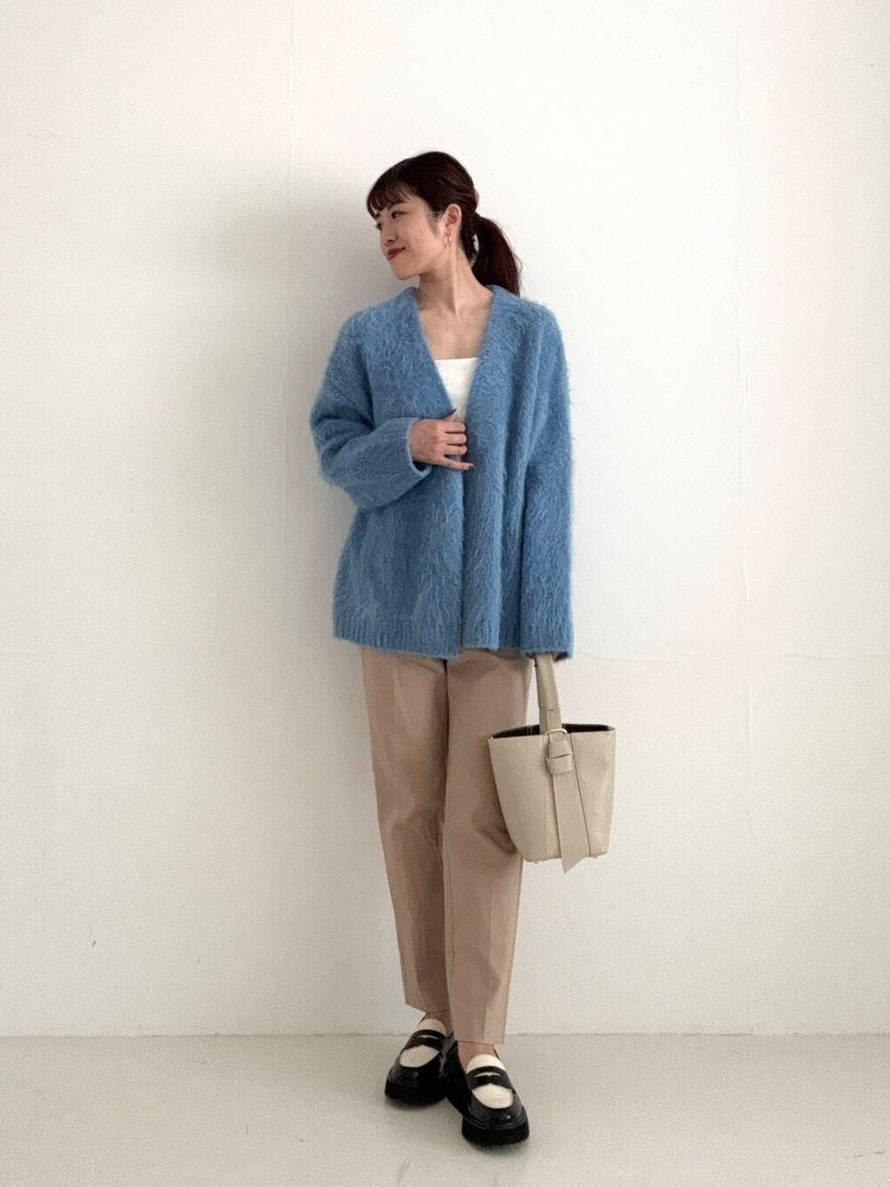 ファーのような毛足が魅力的なカーディガンを着用しました♪
