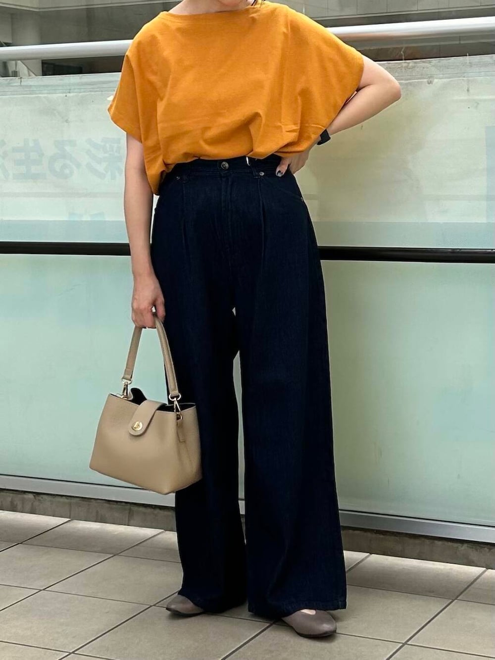 ワイドシルエットでトップスをインするとバランスよく合わせられます。