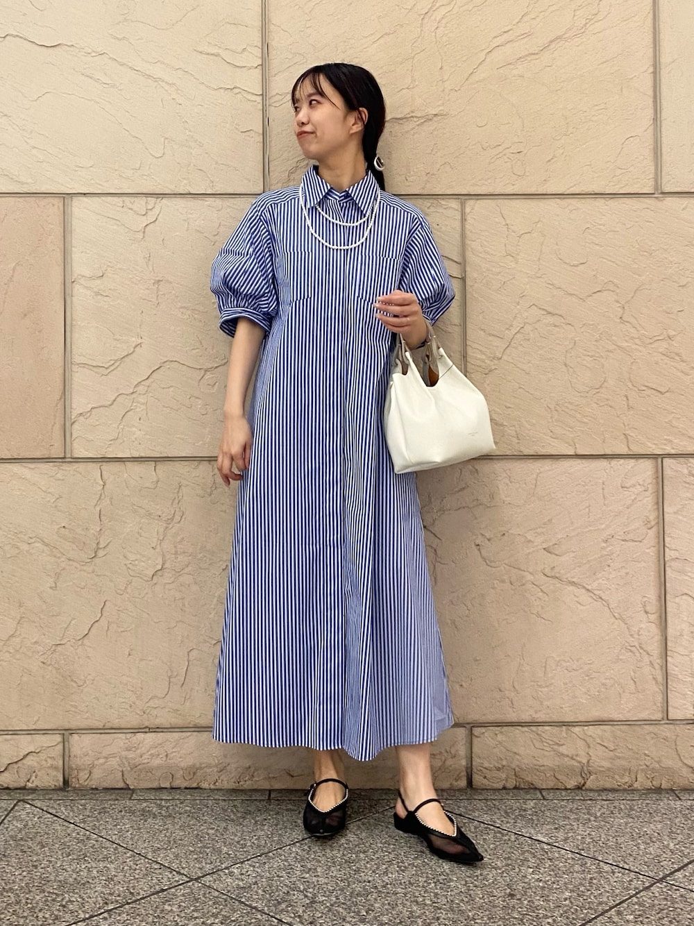 ベーシックなパンツが多い方、ブルーで一気に華やかになります。