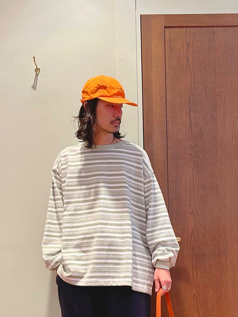 ベースはカジュアルスタイルですが、バッグやシューズはレザーアイテムにしつつ、カジュアルすぎないのが◎