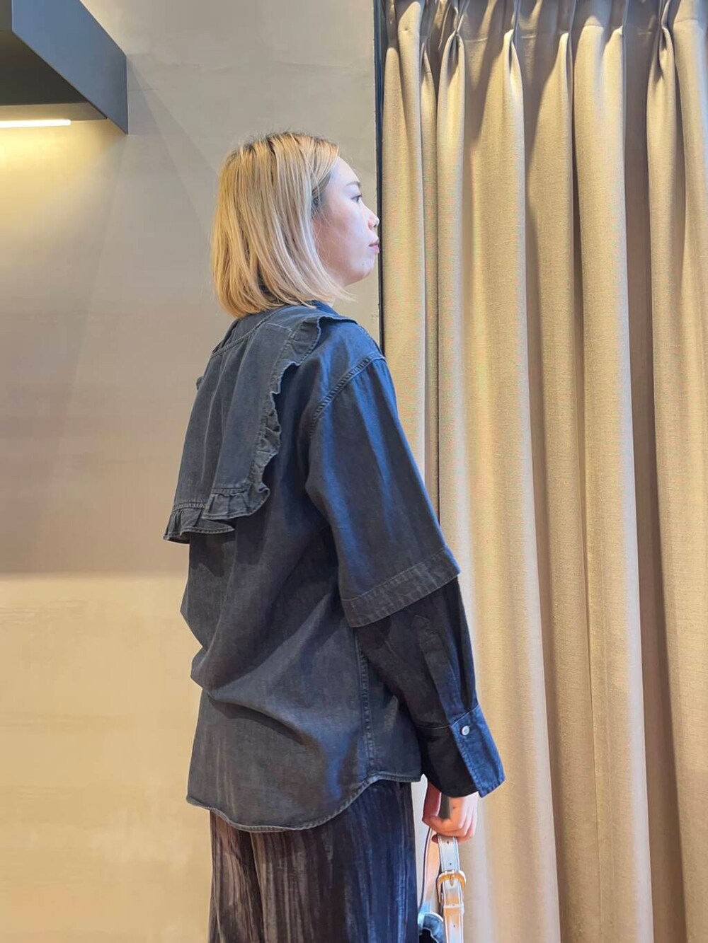 フリルの襟もデニムなので甘すぎなくていい感じ!