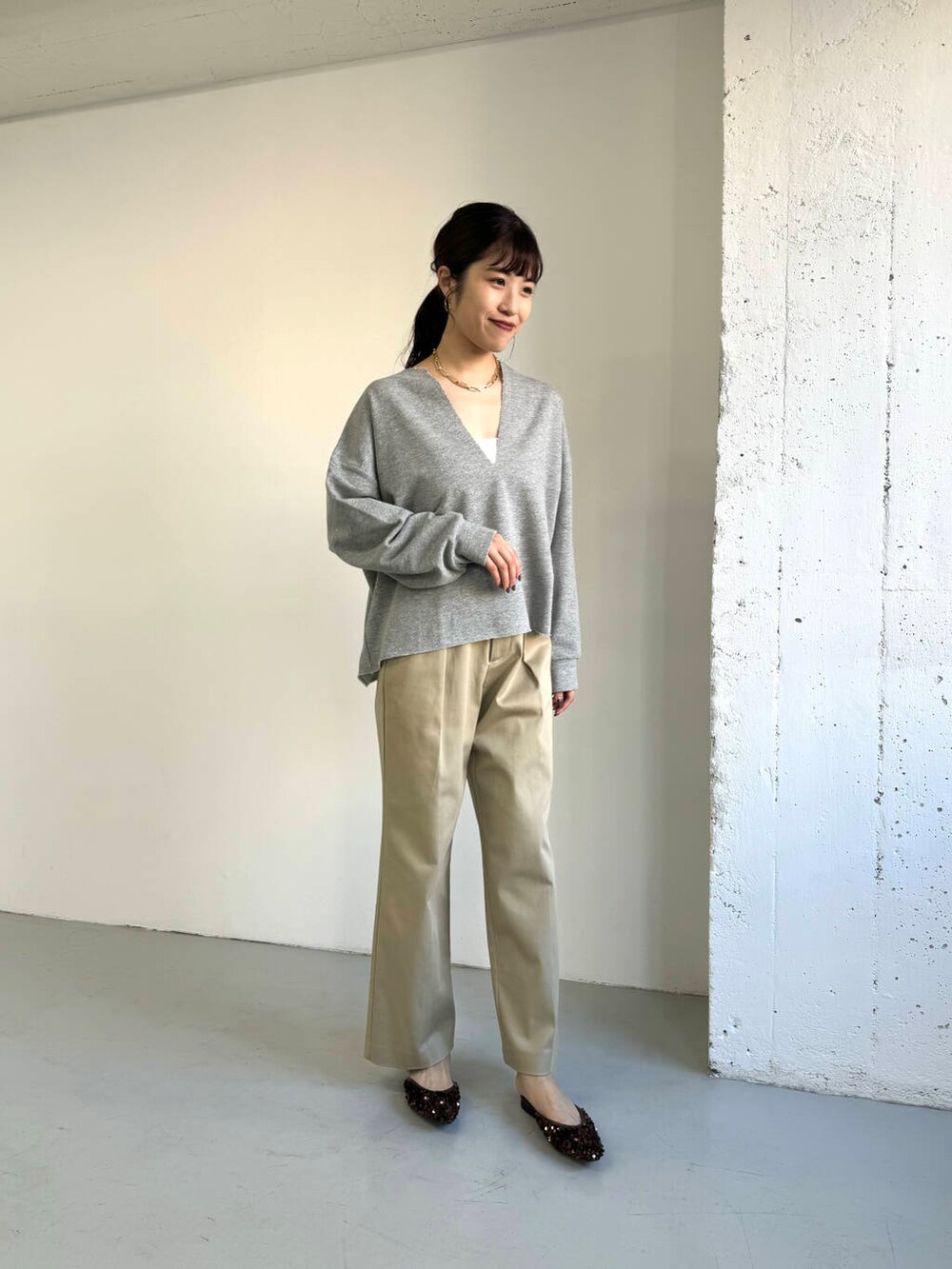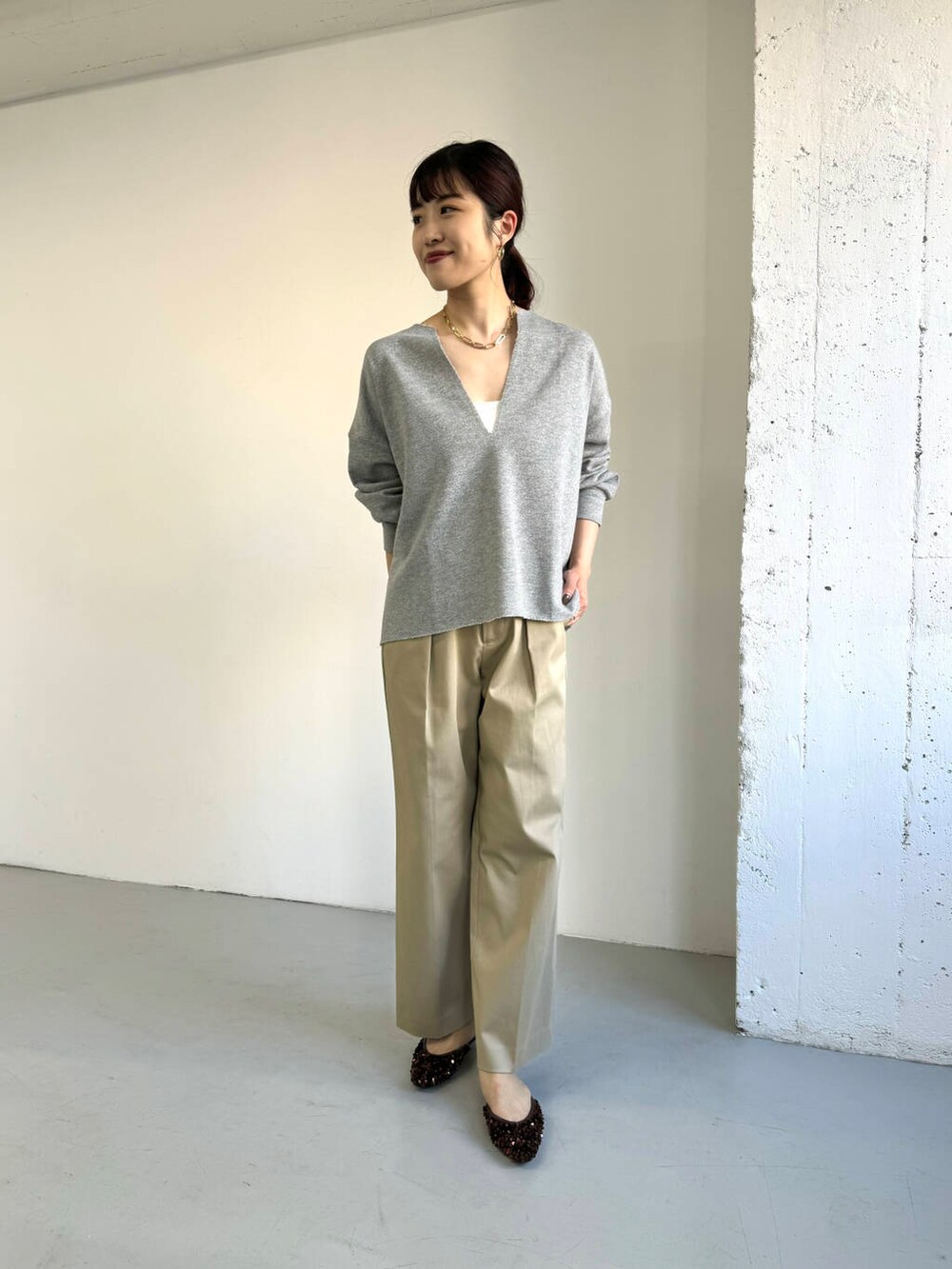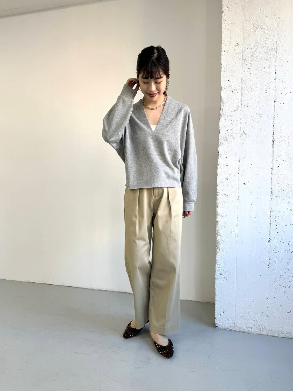 首元のVネック仕様が女性らしい、程よい着丈のプルオーバーを着用しました♪