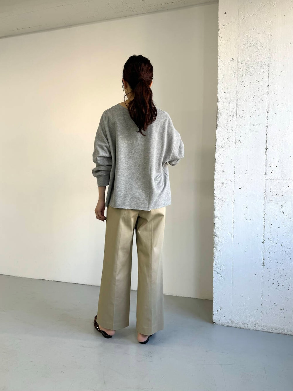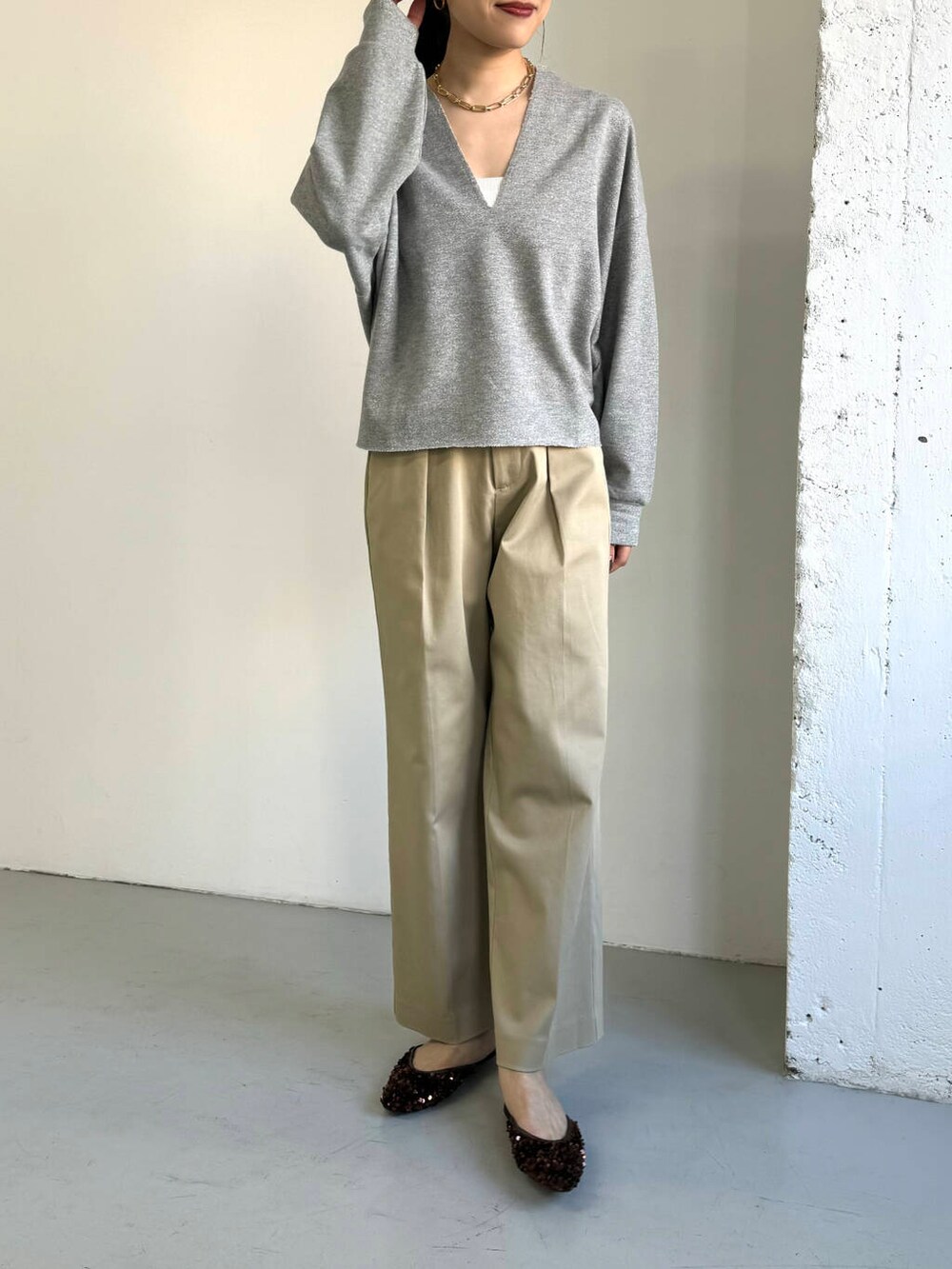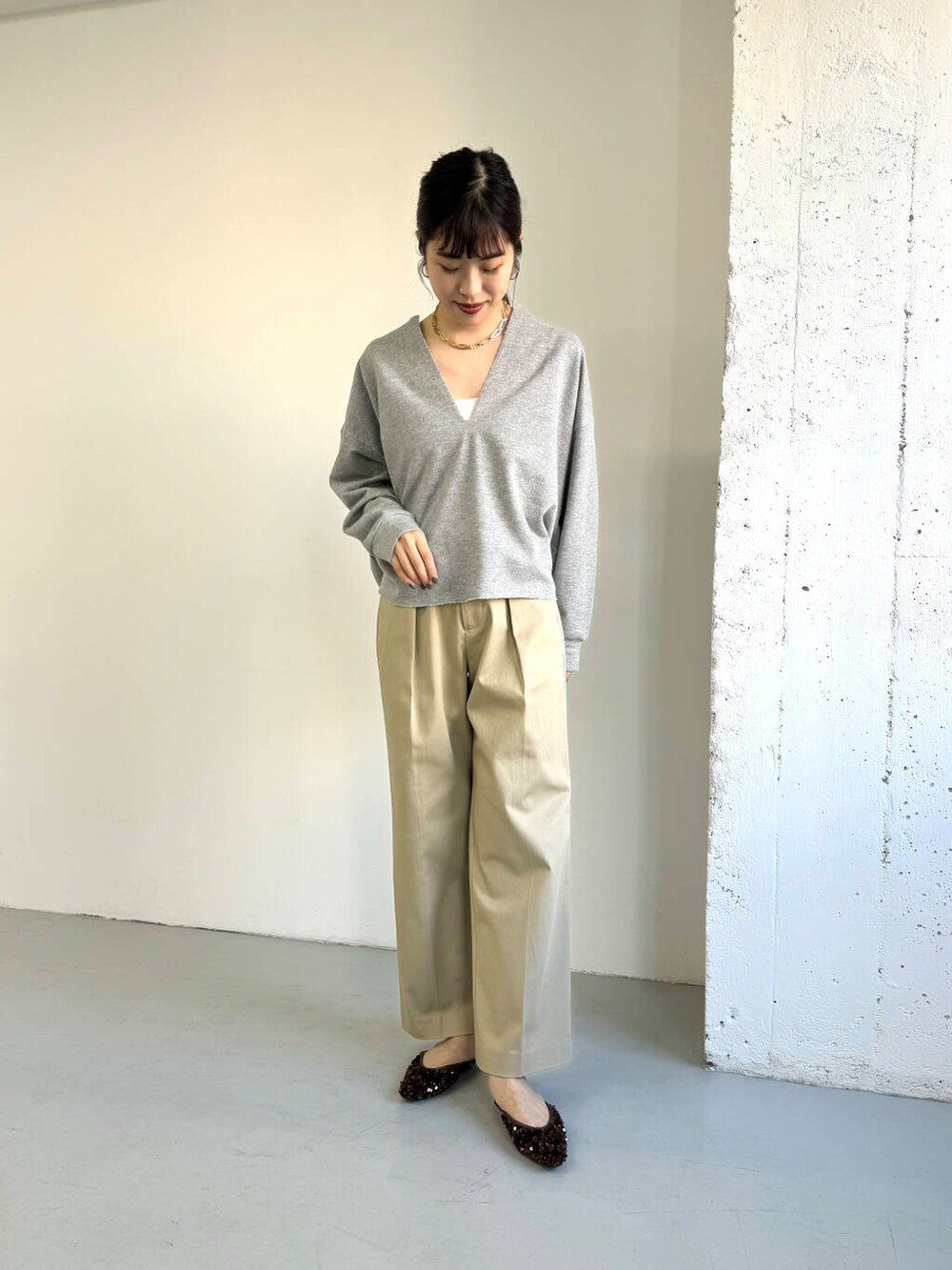 首元のVネック仕様が女性らしい、程よい着丈のプルオーバーを着用しました♪