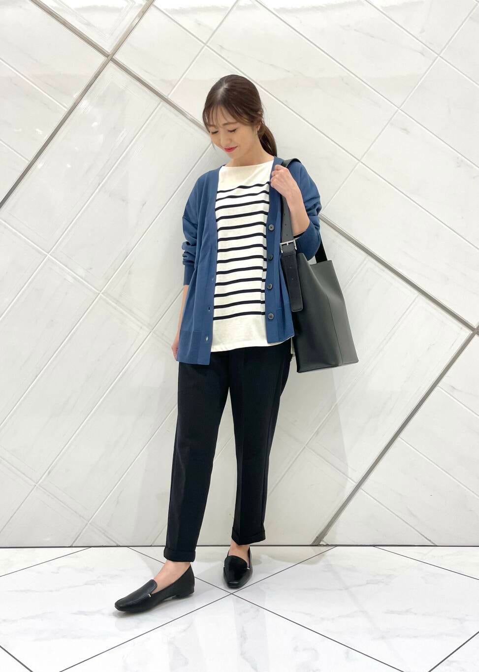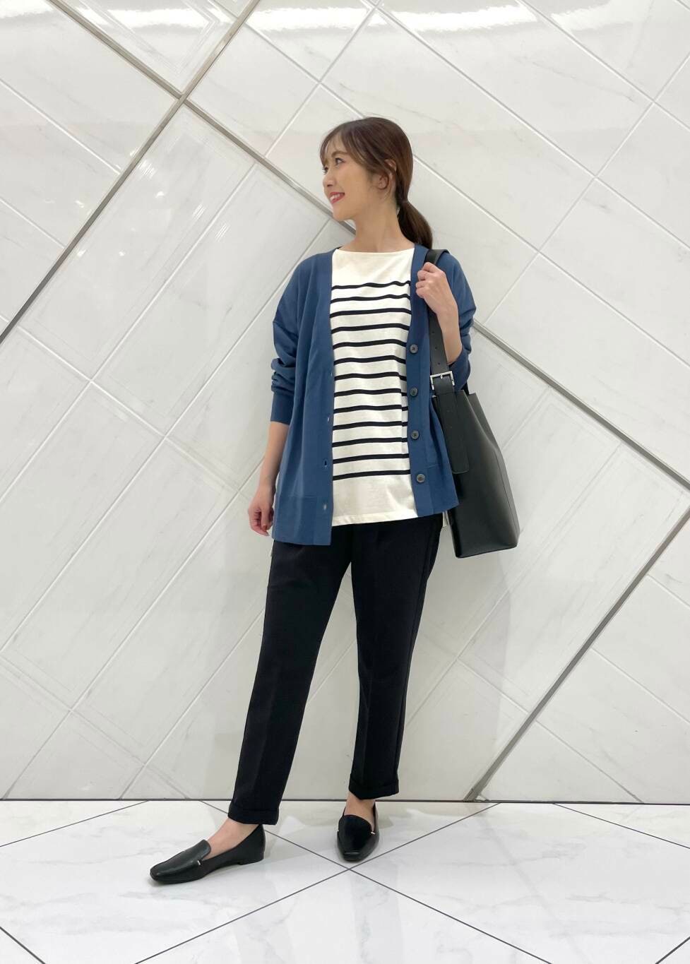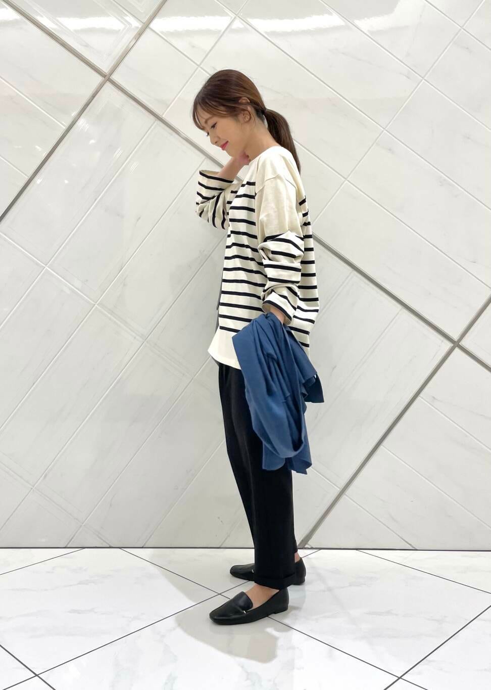 トップスは全体的にゆったりとしたサイズ感なので、体のラインを拾わずヒップまでしっかり隠れる着丈です。
