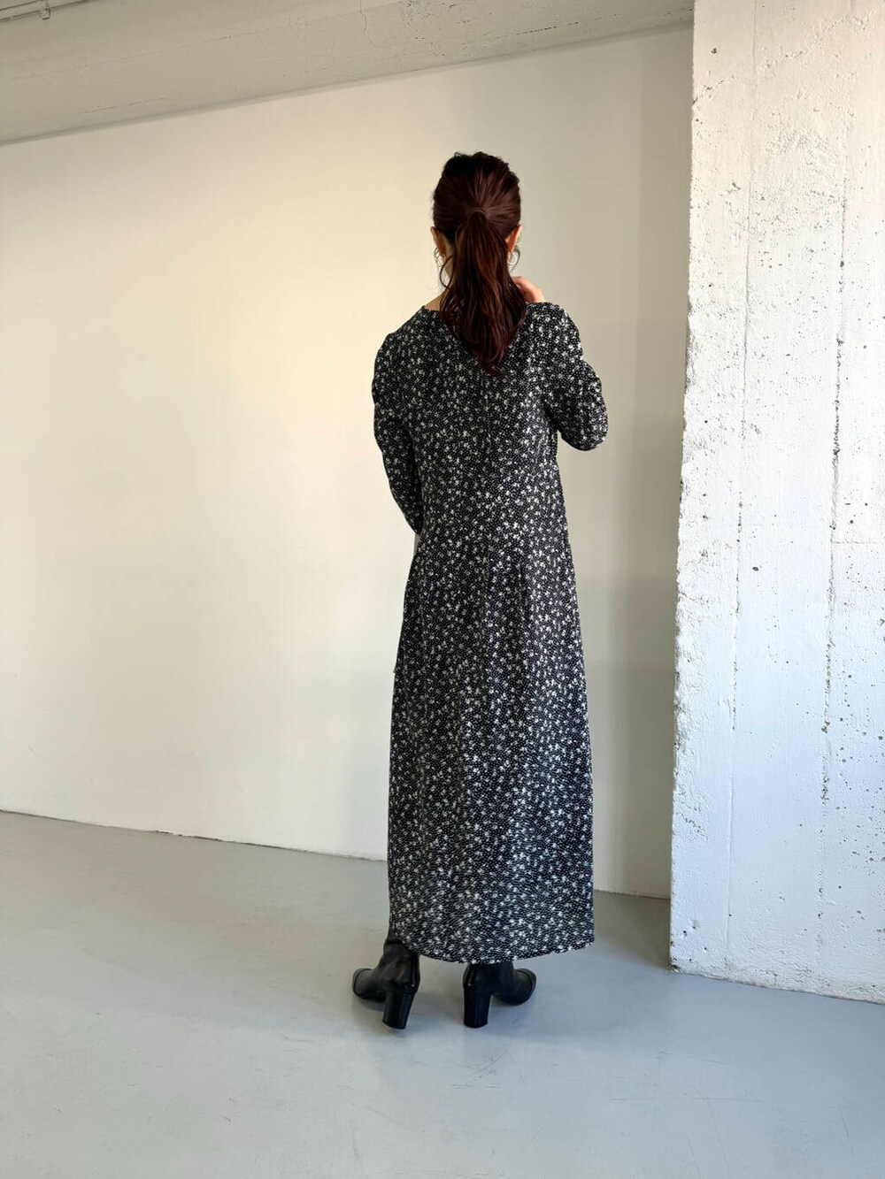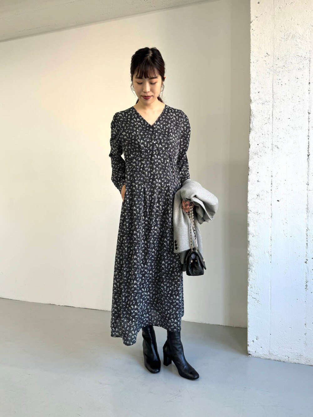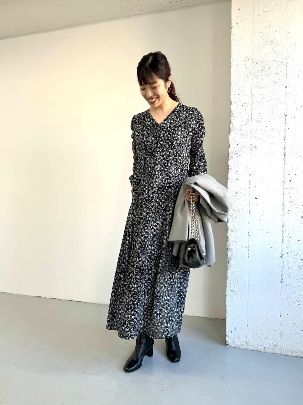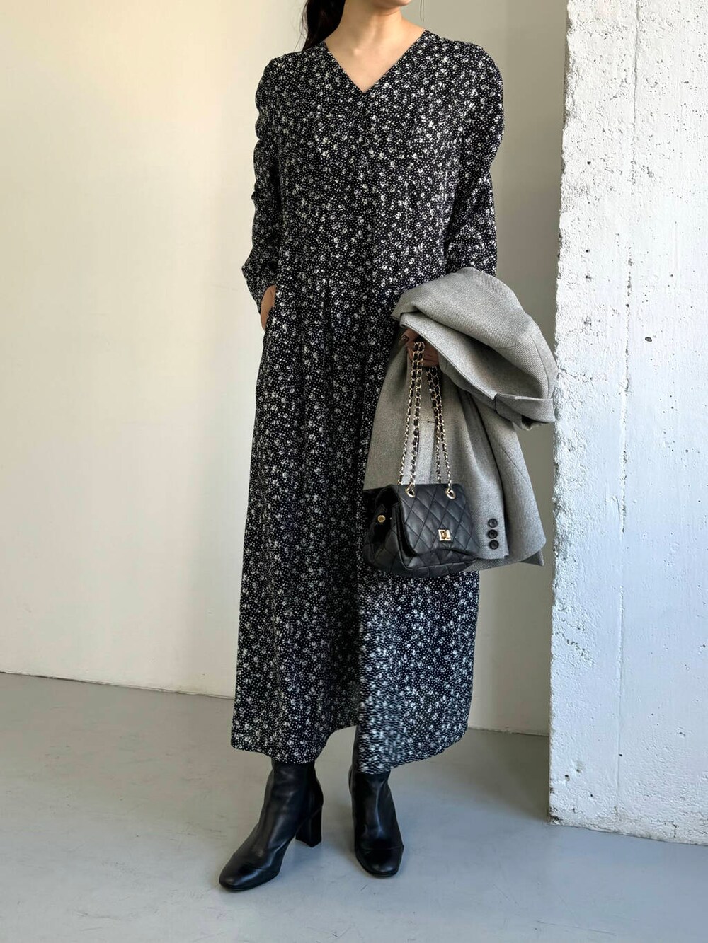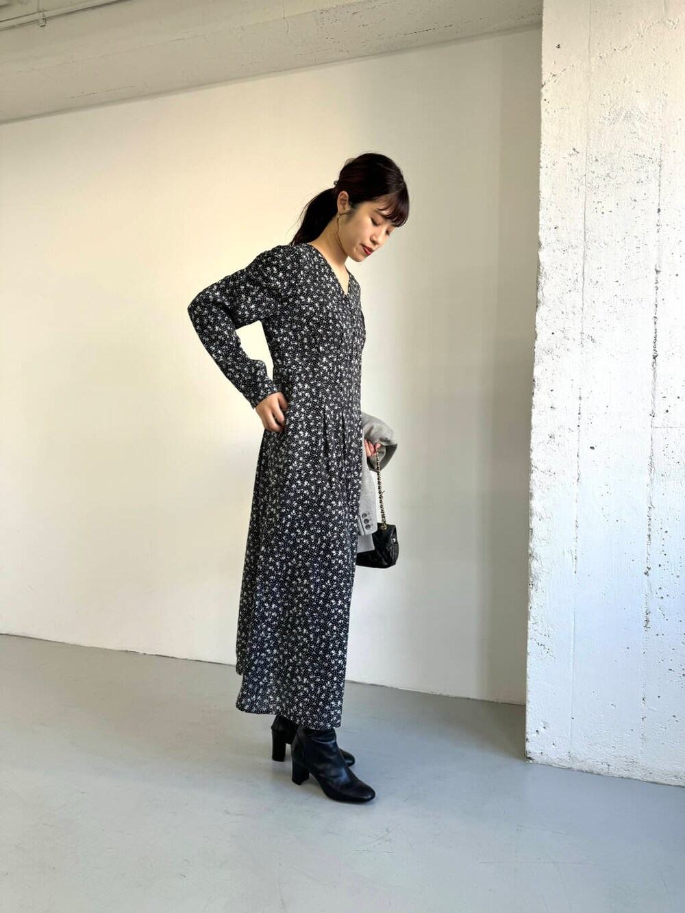 ヴィンテージライクな小花柄プリントが目を惹くワンピースを着用しました♪
