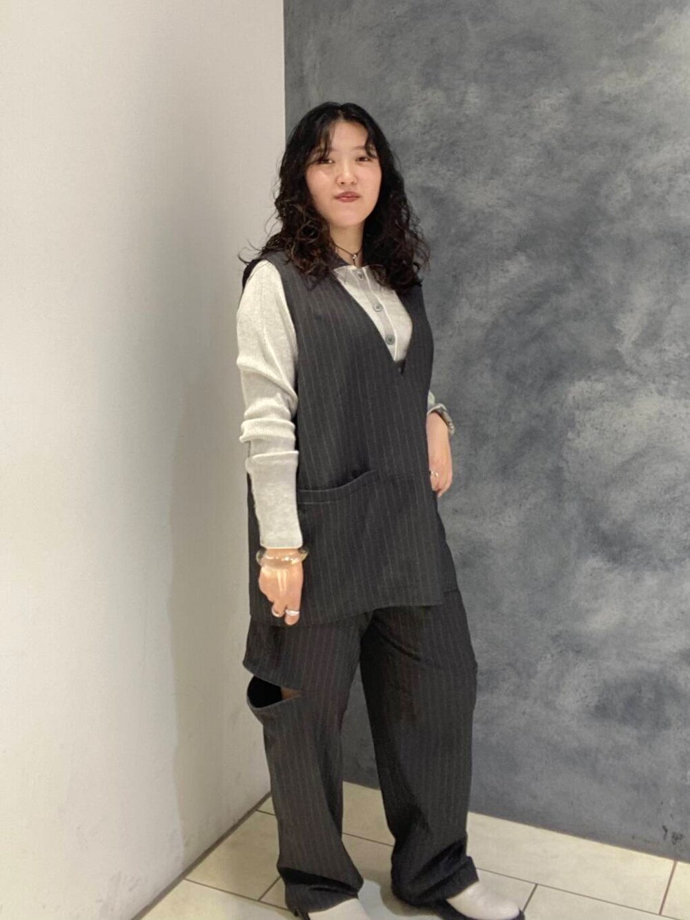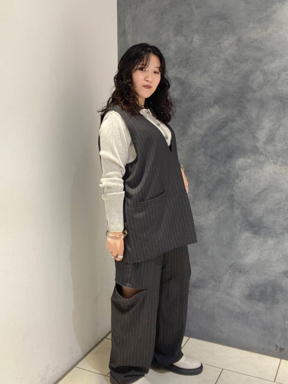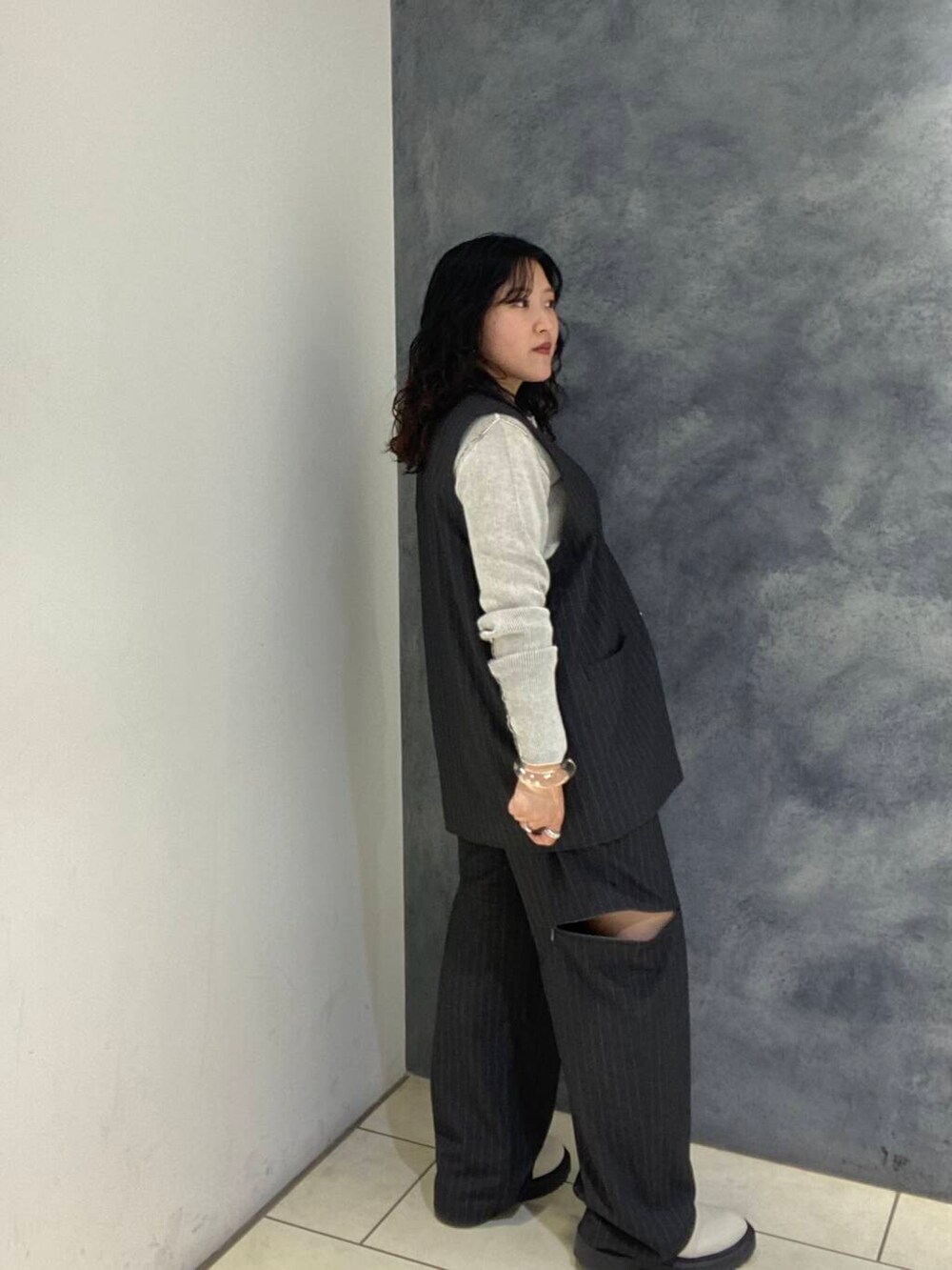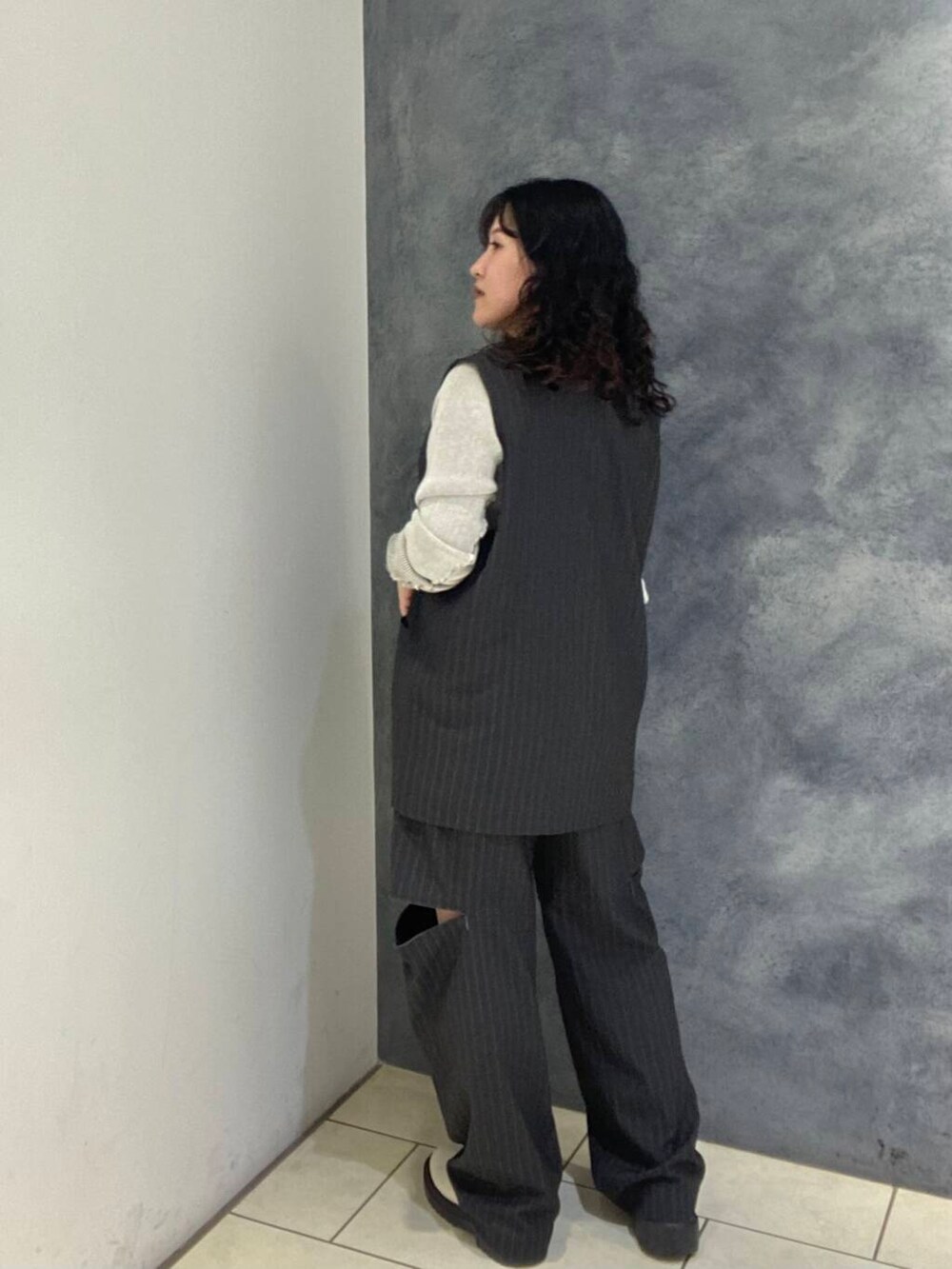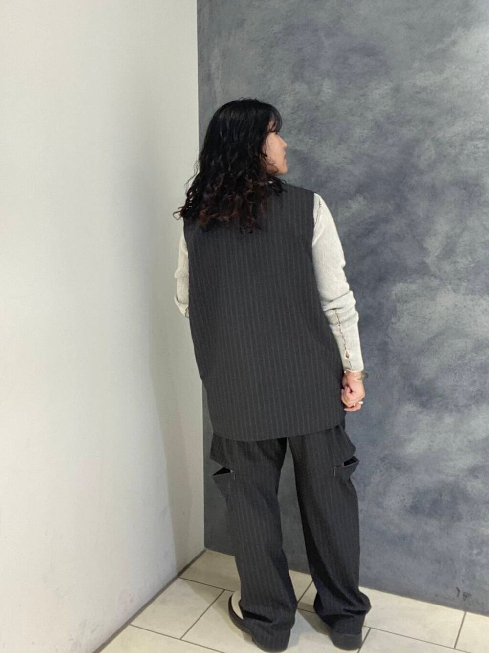 スッキリシルエットのベストと、同じデザインのニースリットスラックスのセットアップ🙆🩷