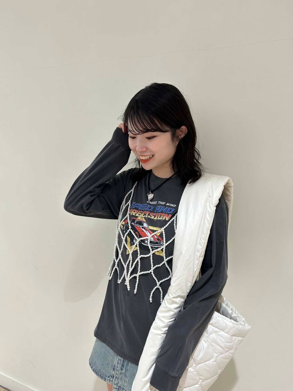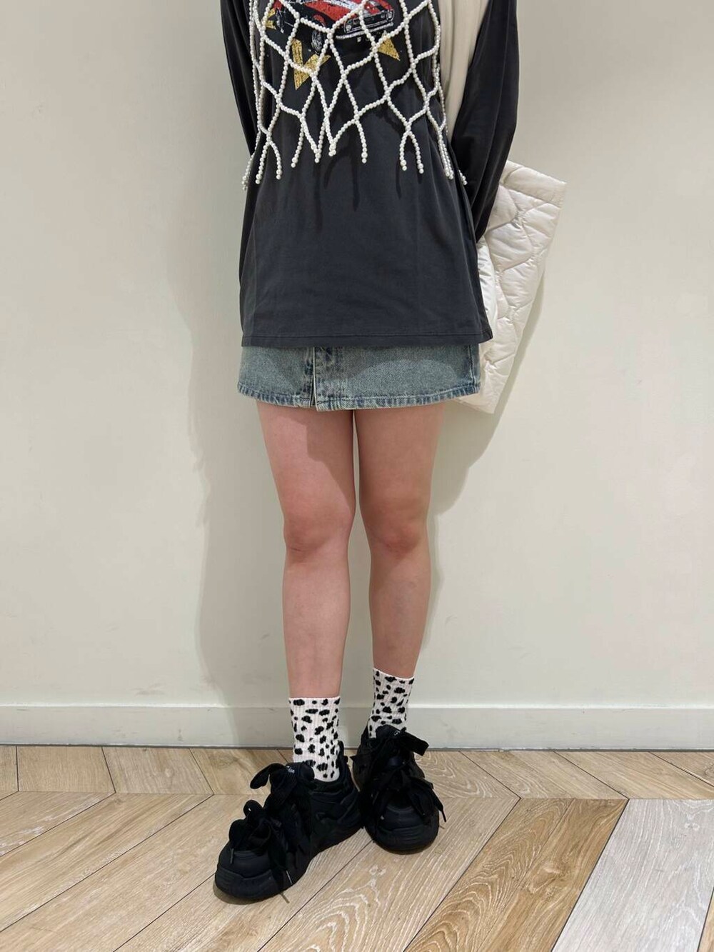 パールのビスチェに合わせてカジュアル感を抑えてみました!
