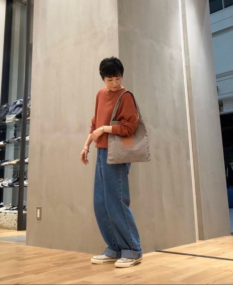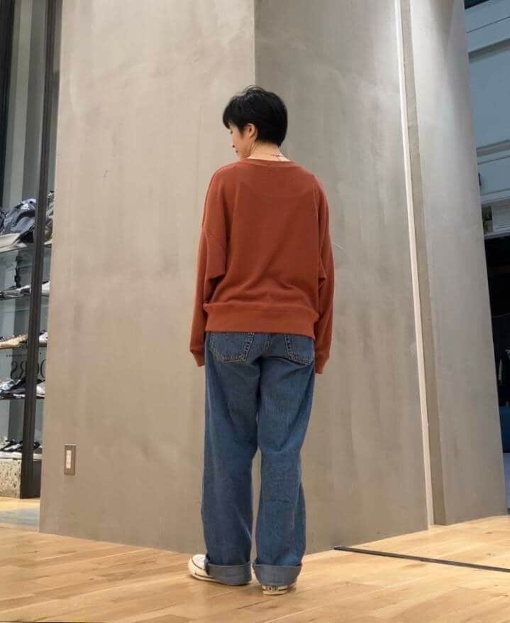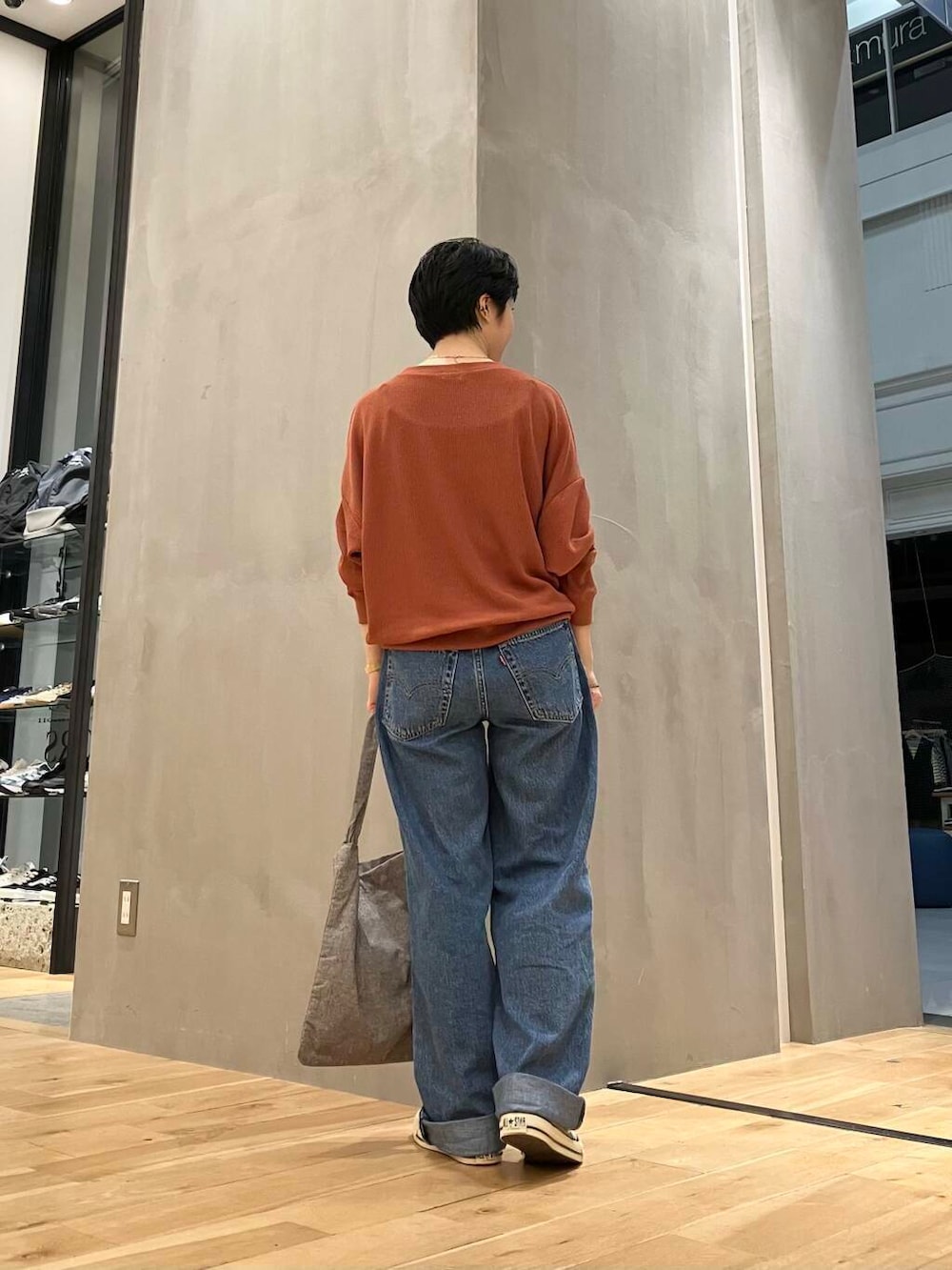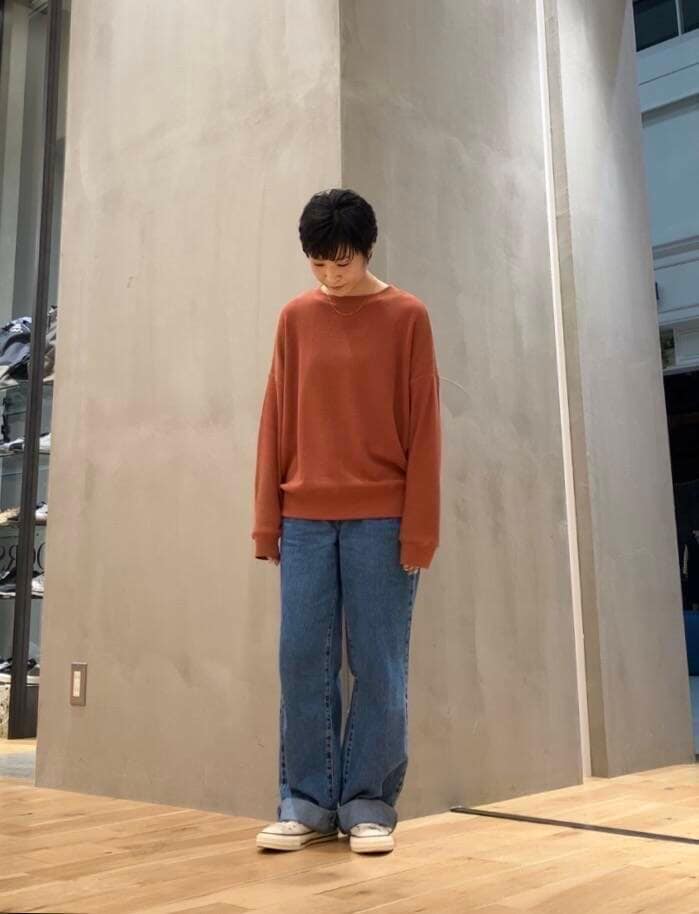 この日はデニム合わせでカジュアルに振りましたが、ボトムスや小物次第で綺麗目にも着られます!接客のなかでもついついおすすめしてしまいますね〜