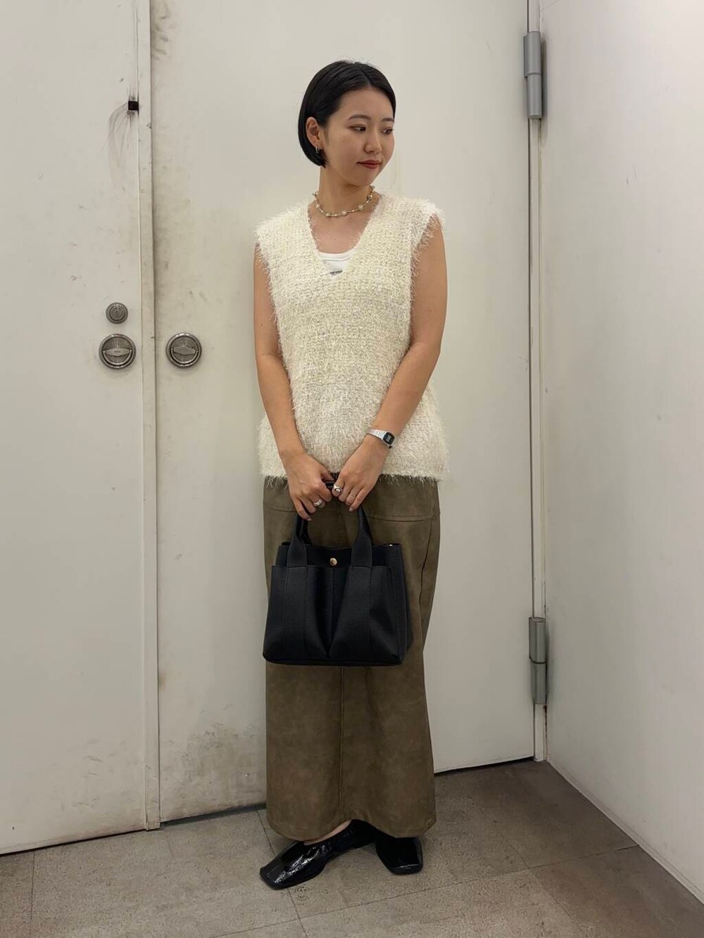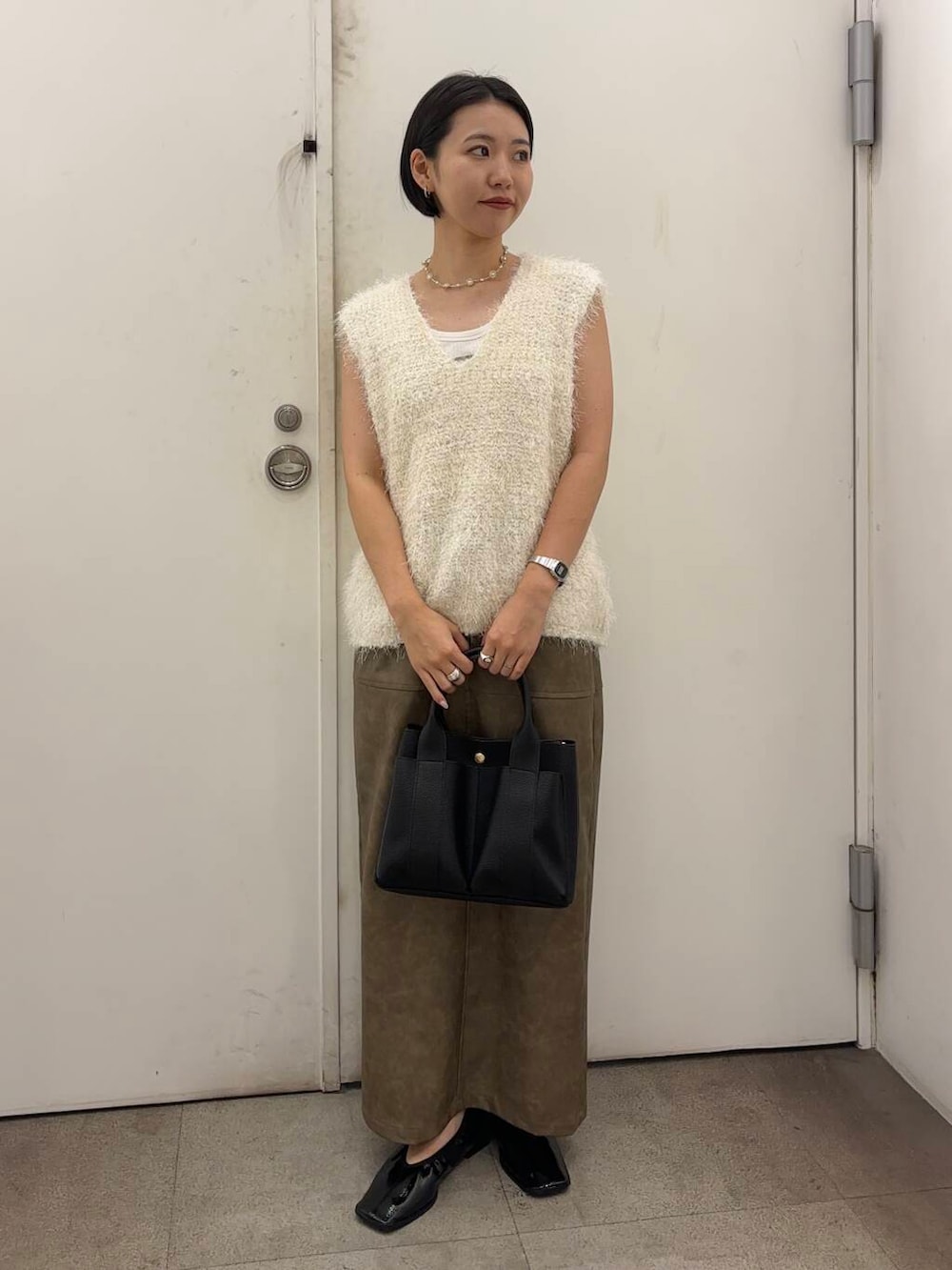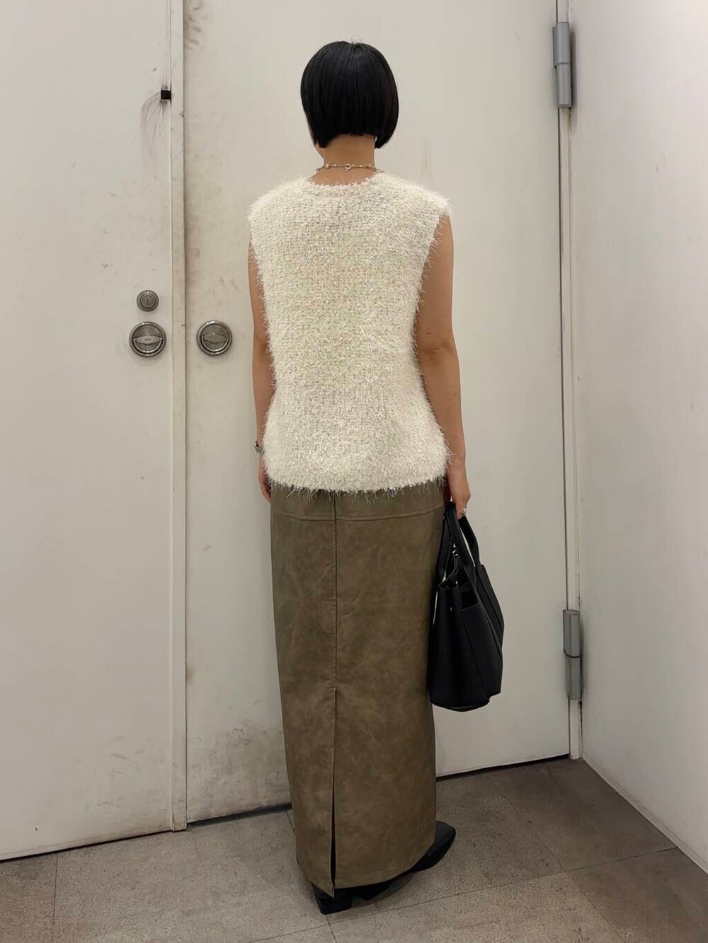 今回はレザーっぽいスカートと合わせて