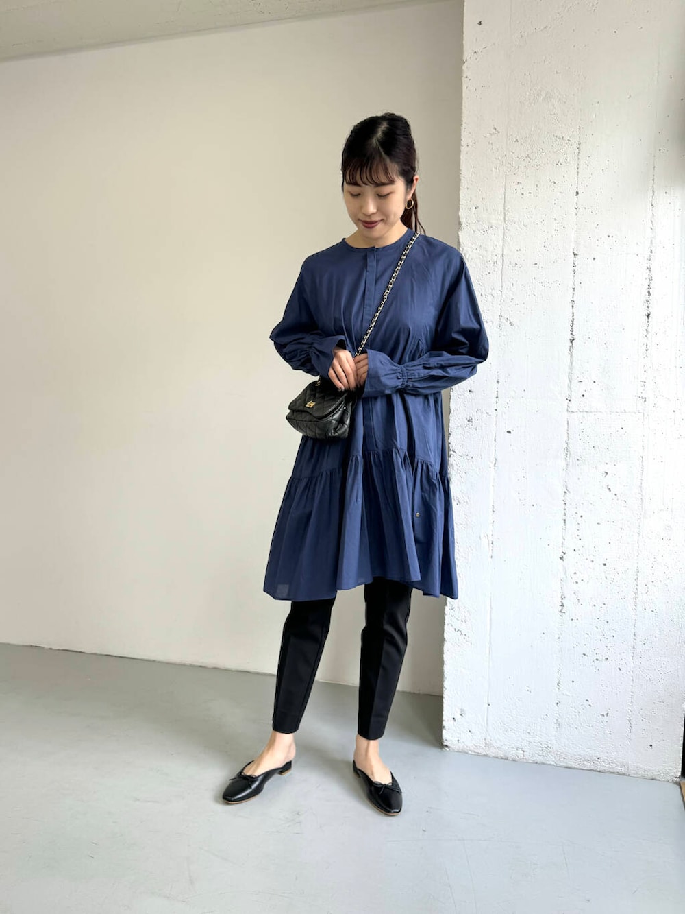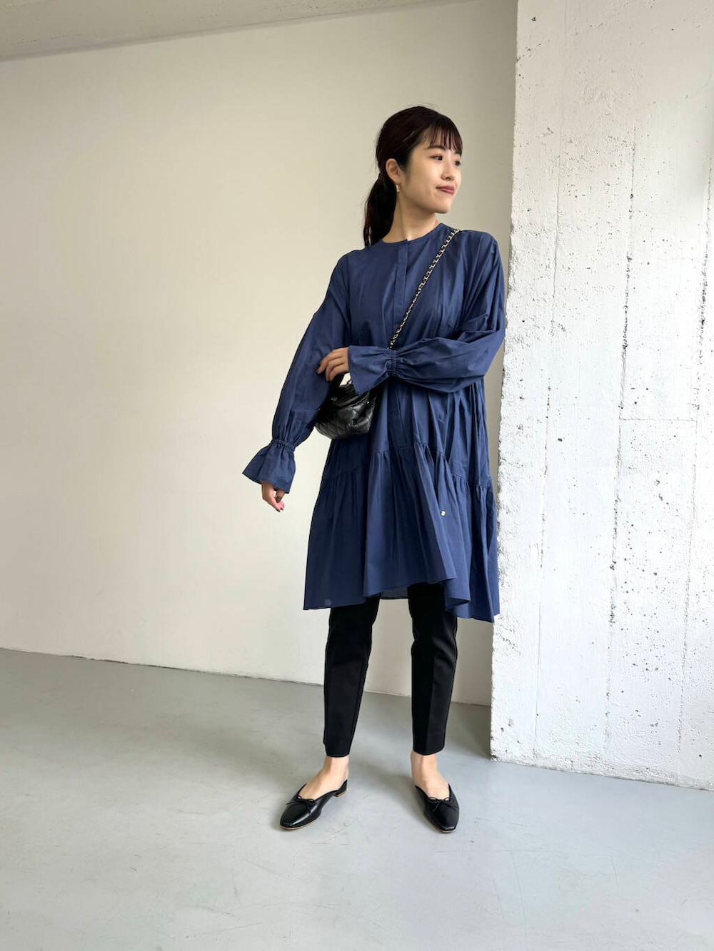 裾フリルが印象的な、チュニック風のミニ丈ワンピースを着用しました♪