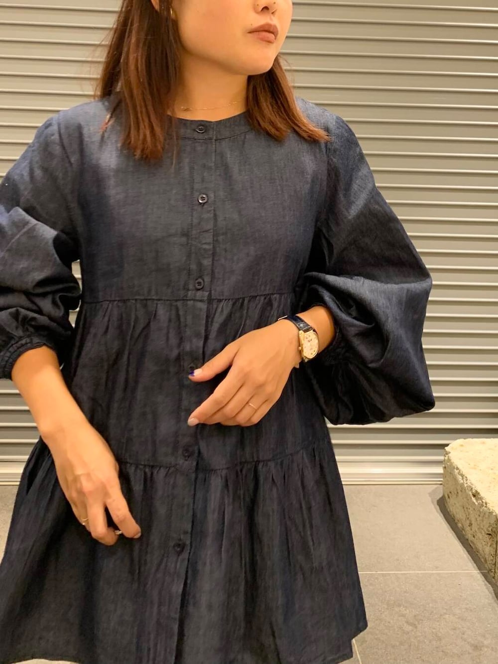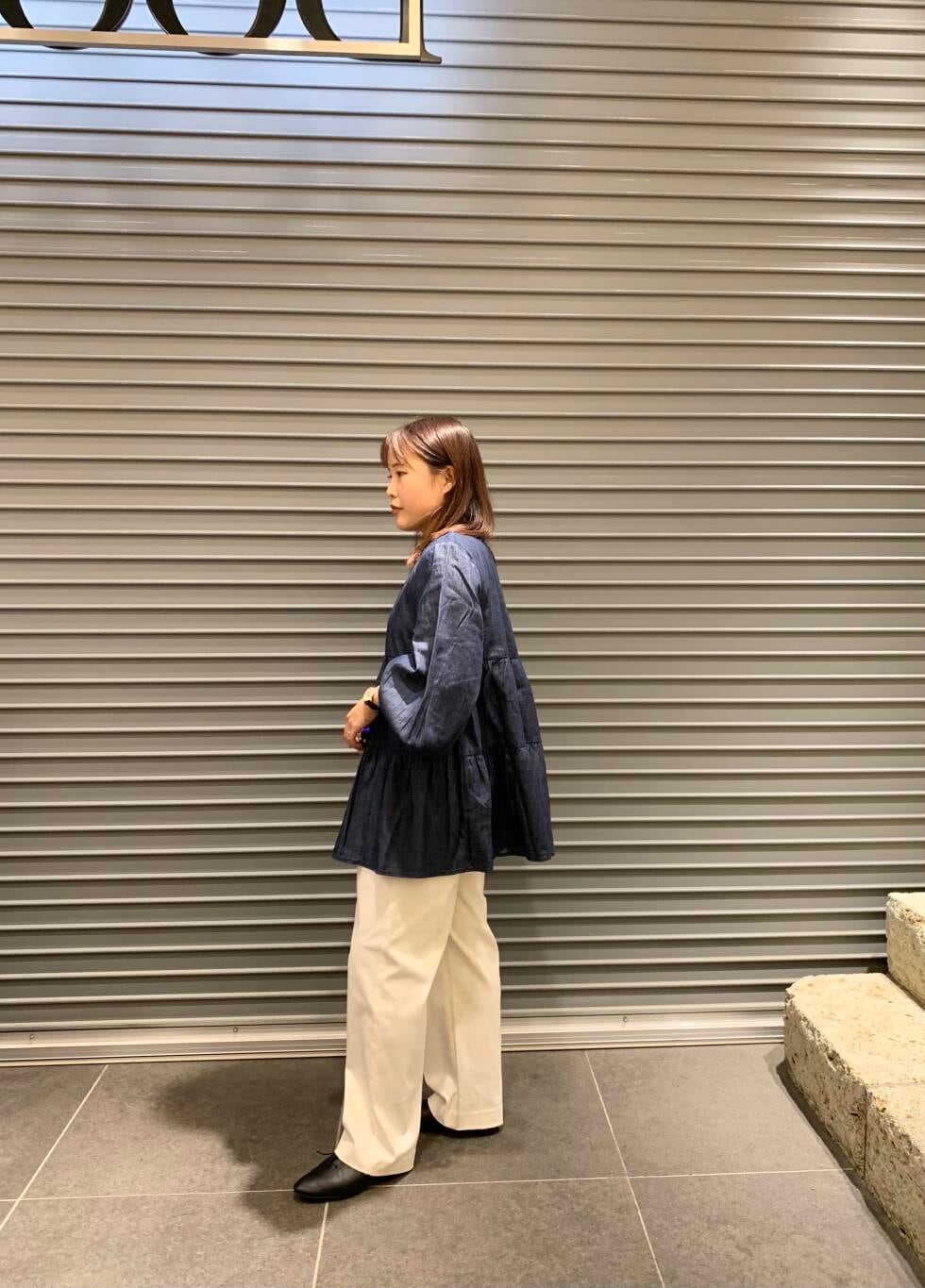 ティアードシルエットで甘めな形ですがデニム調なので可愛らしすぎないです◎