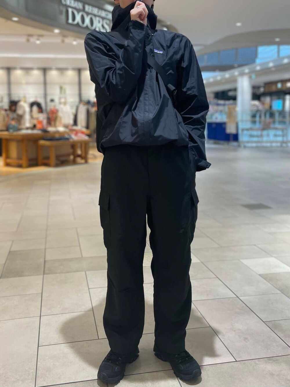 シェルジャケットを使ったオールブラックコーデ!