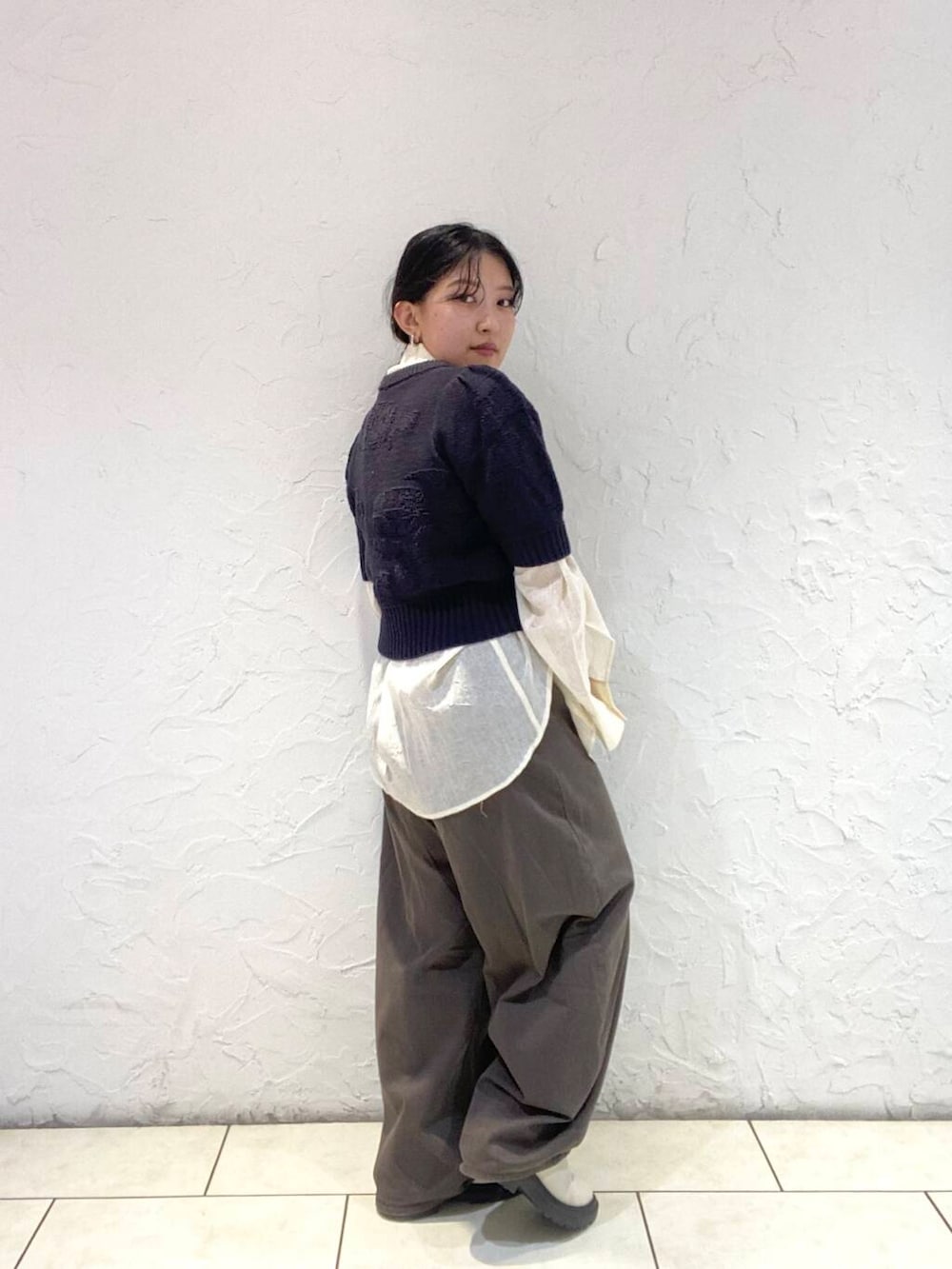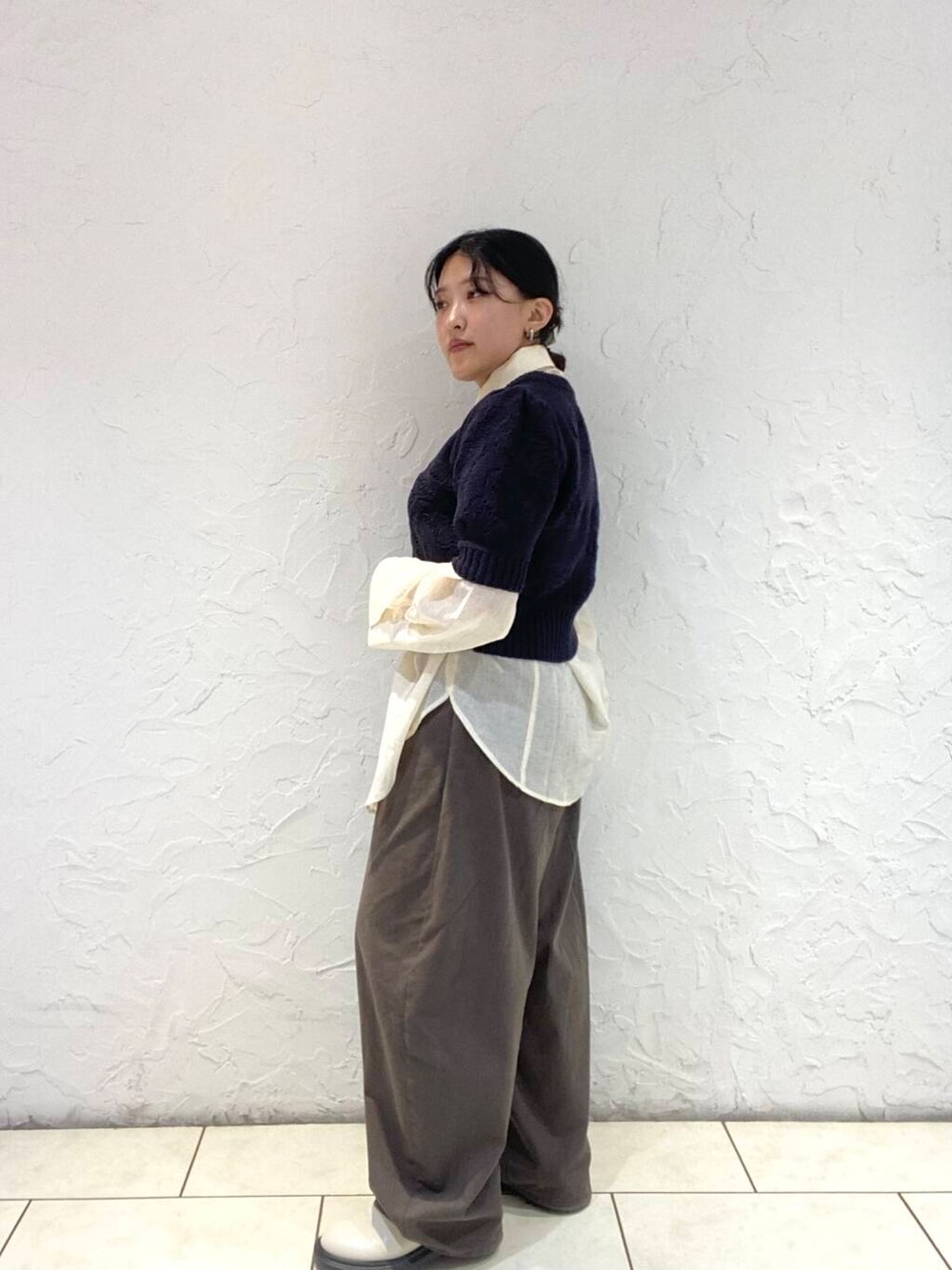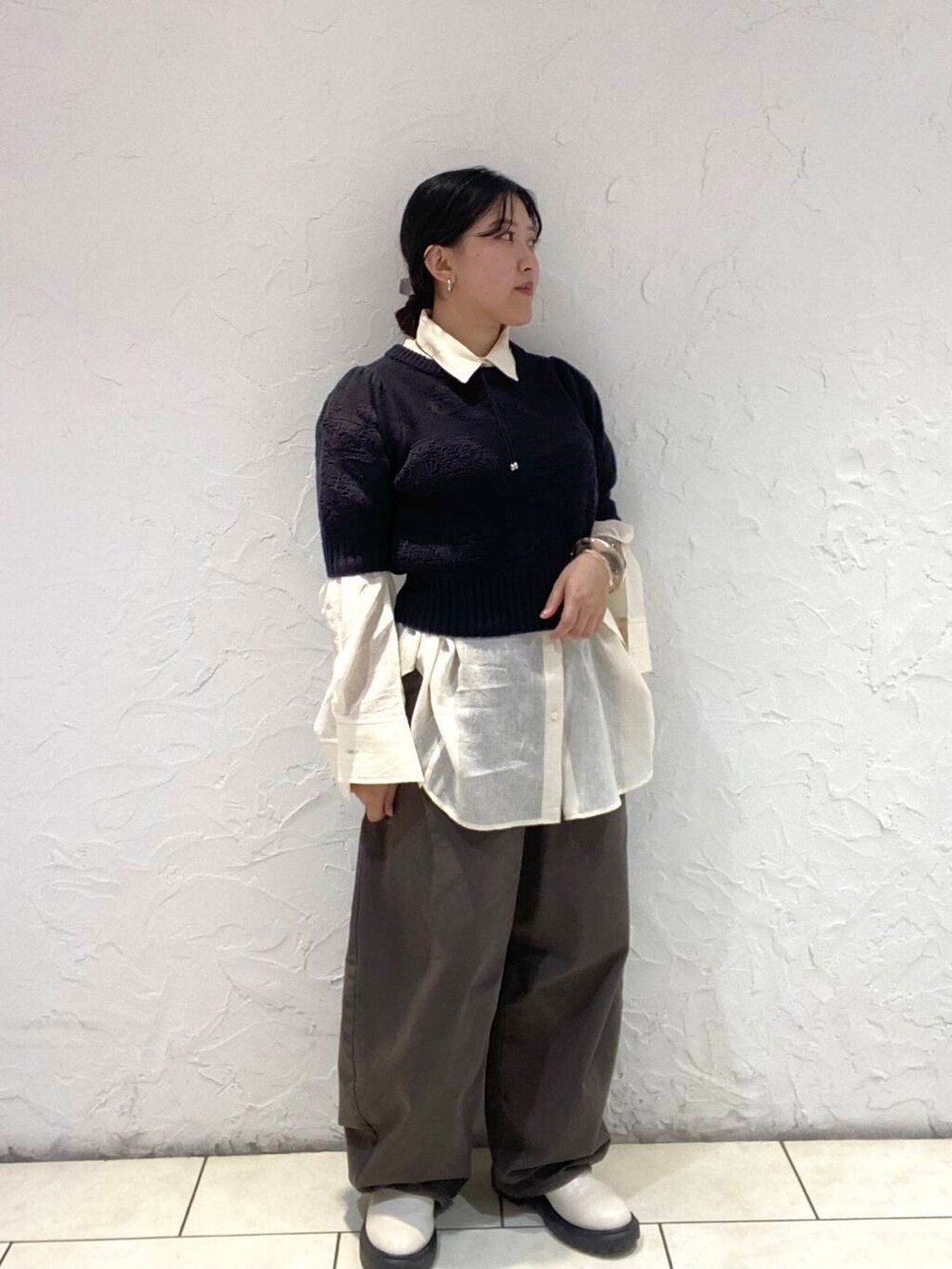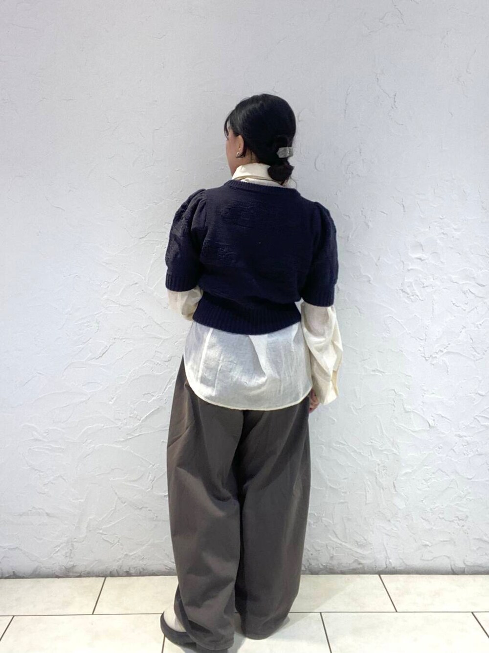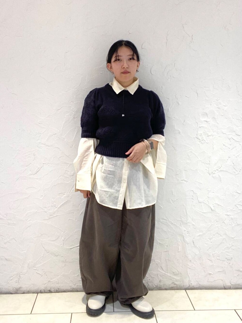 今から使えるパフスリーブフラワーニット🌼×王道のシャツの組み合わせがかわいい、、🥹❤️