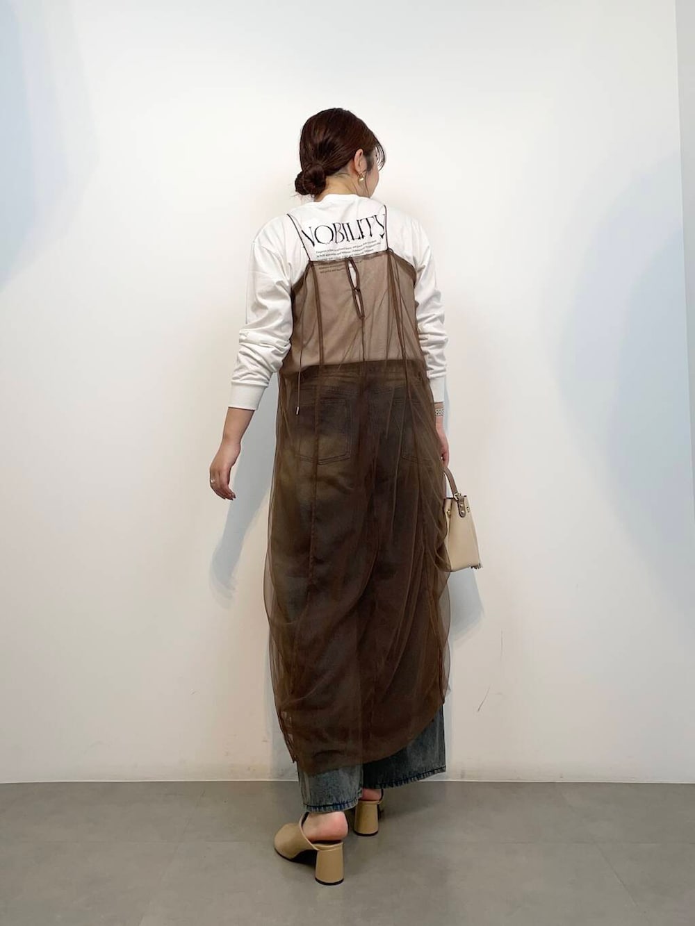 こちらのシアーワンピースは、前の絞りを変えるとまた違う印象になるので、いつものコーデにプラスで着ていただくと一気におしゃれに仕上がります!