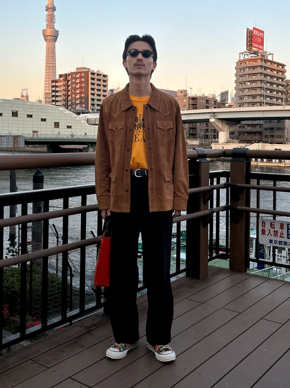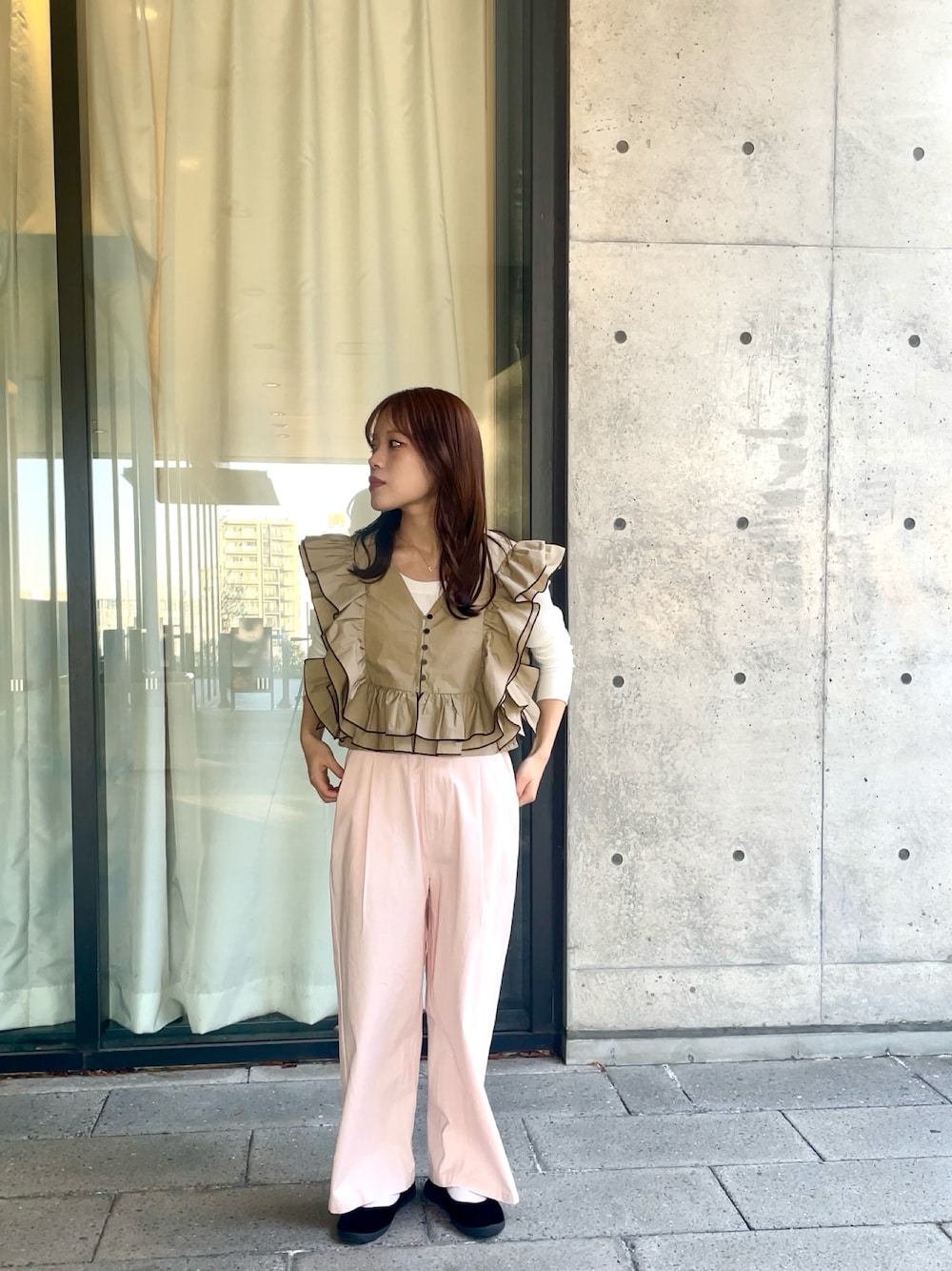 全体的に野暮ったいので、足元にはexclusiveモデルのpumaのスニーカーの色味で締めました。