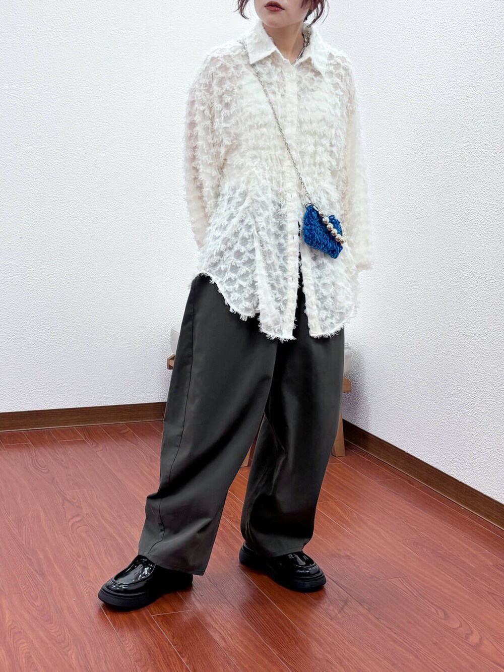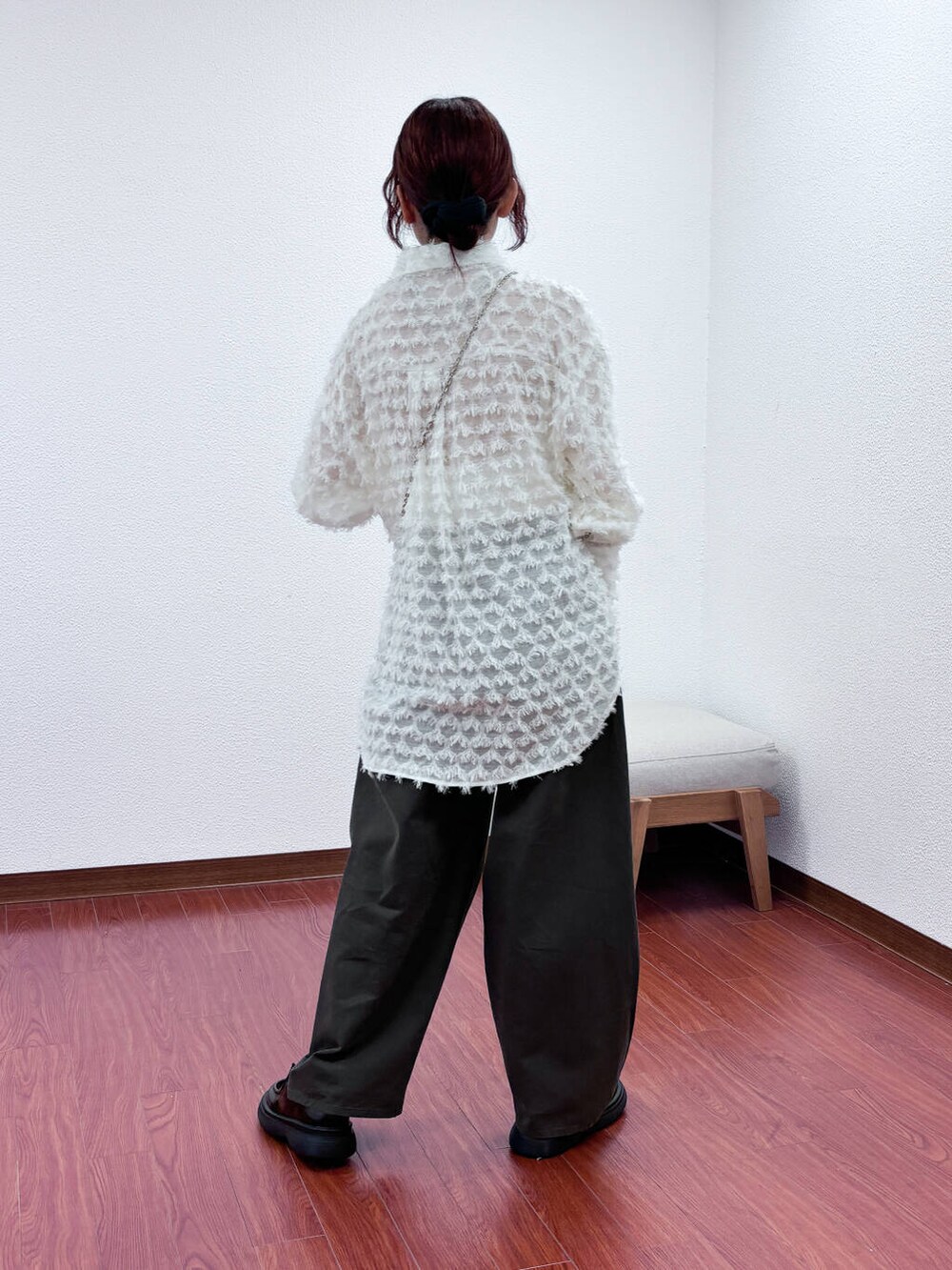ふわふわのフェザーデザインが可愛いシャツ〇