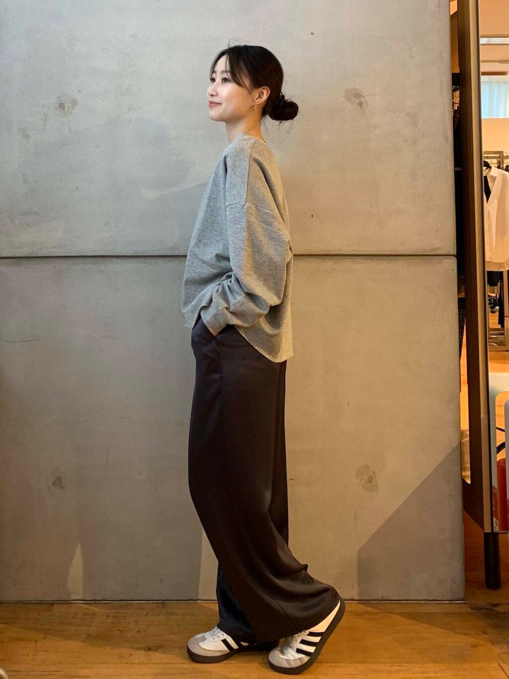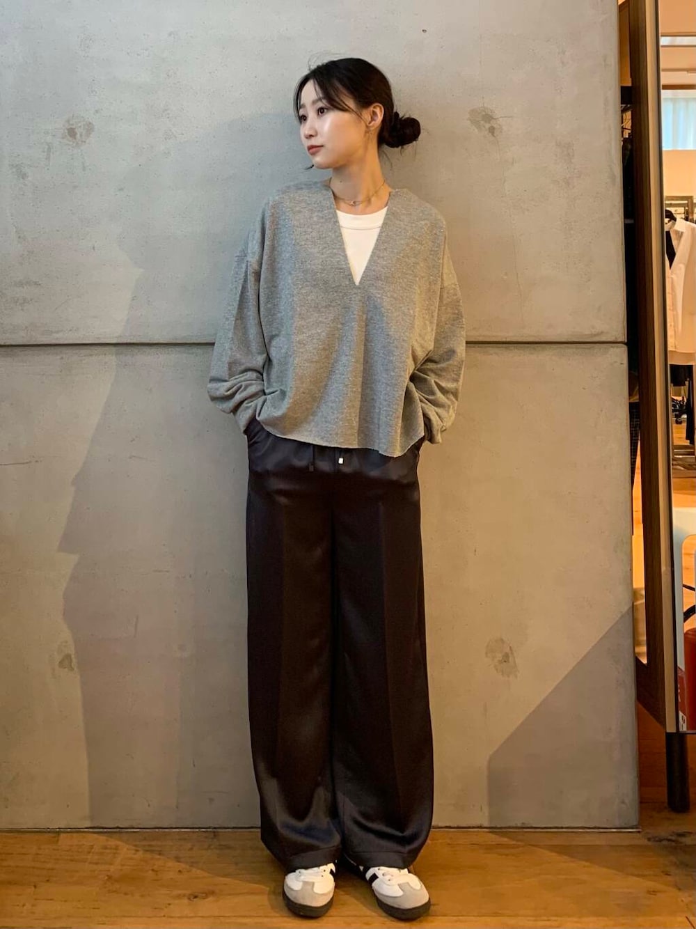 大きくVにあいたラメのスウェットは、すっきり魅せてくれます!Vにあいていることでスウェットのラフすぎ感を無くしています😌