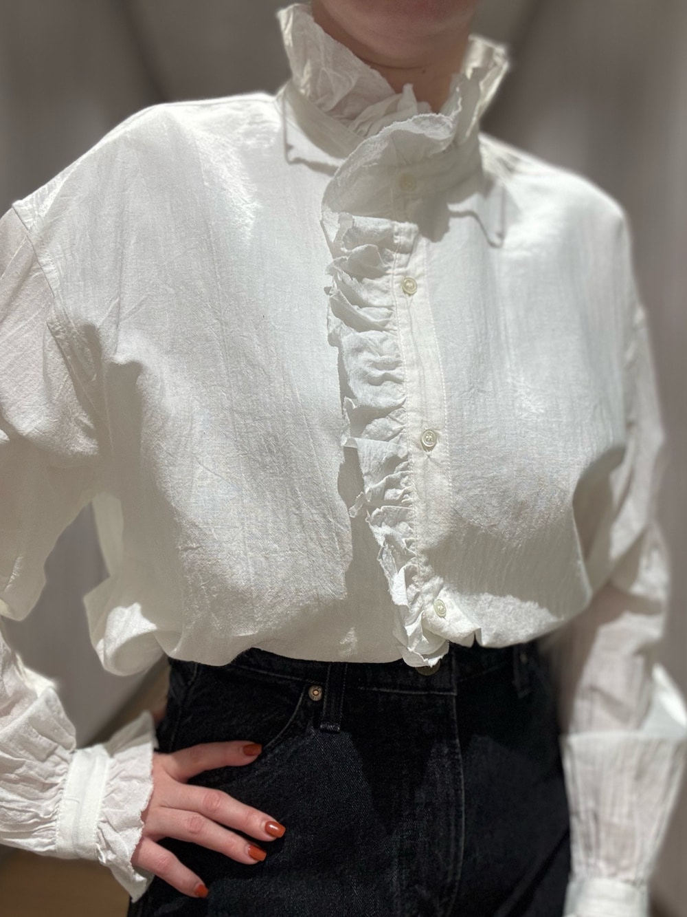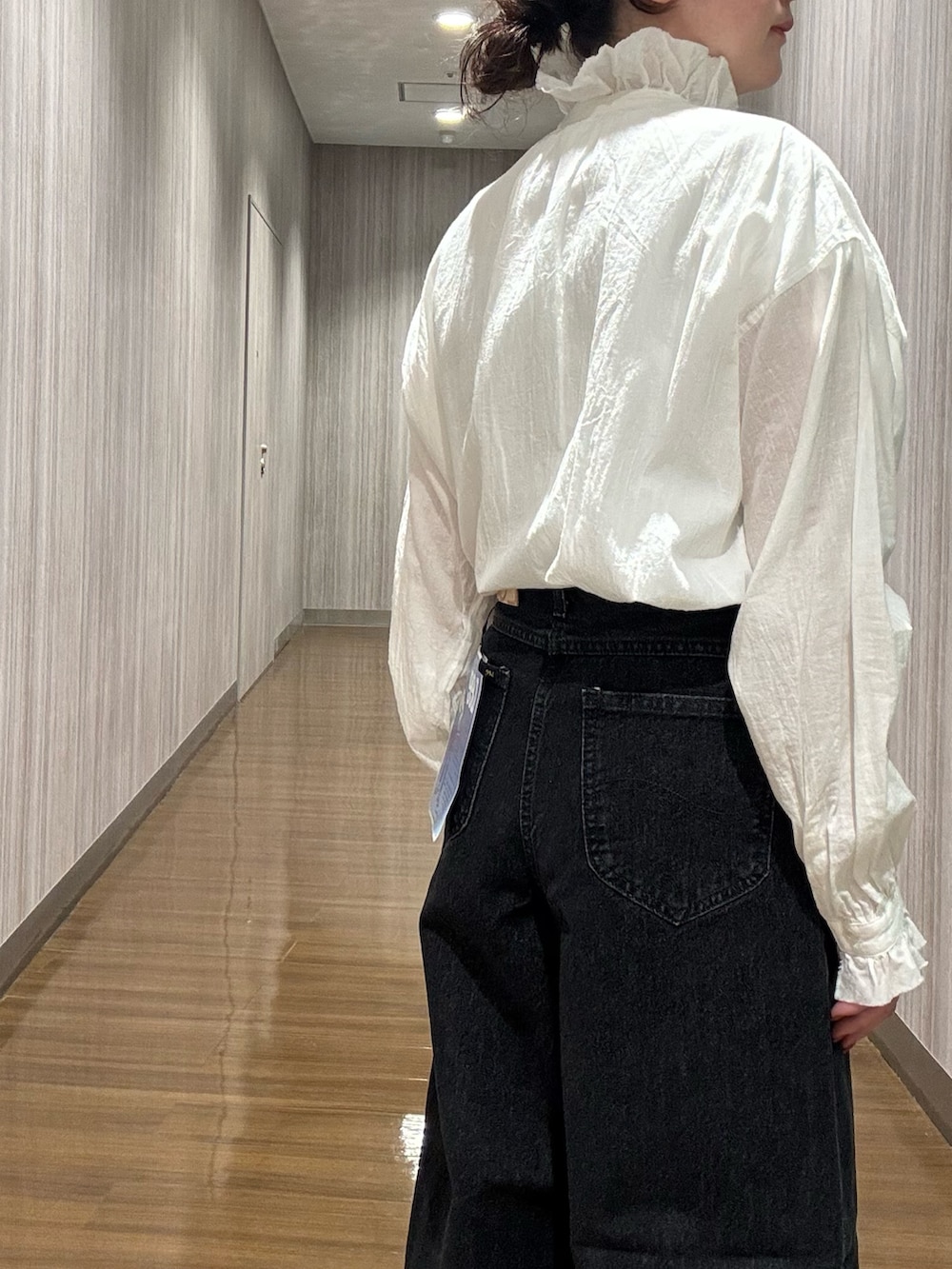 大きめのフリルになのであえてデニムでカジュアルダウン。
