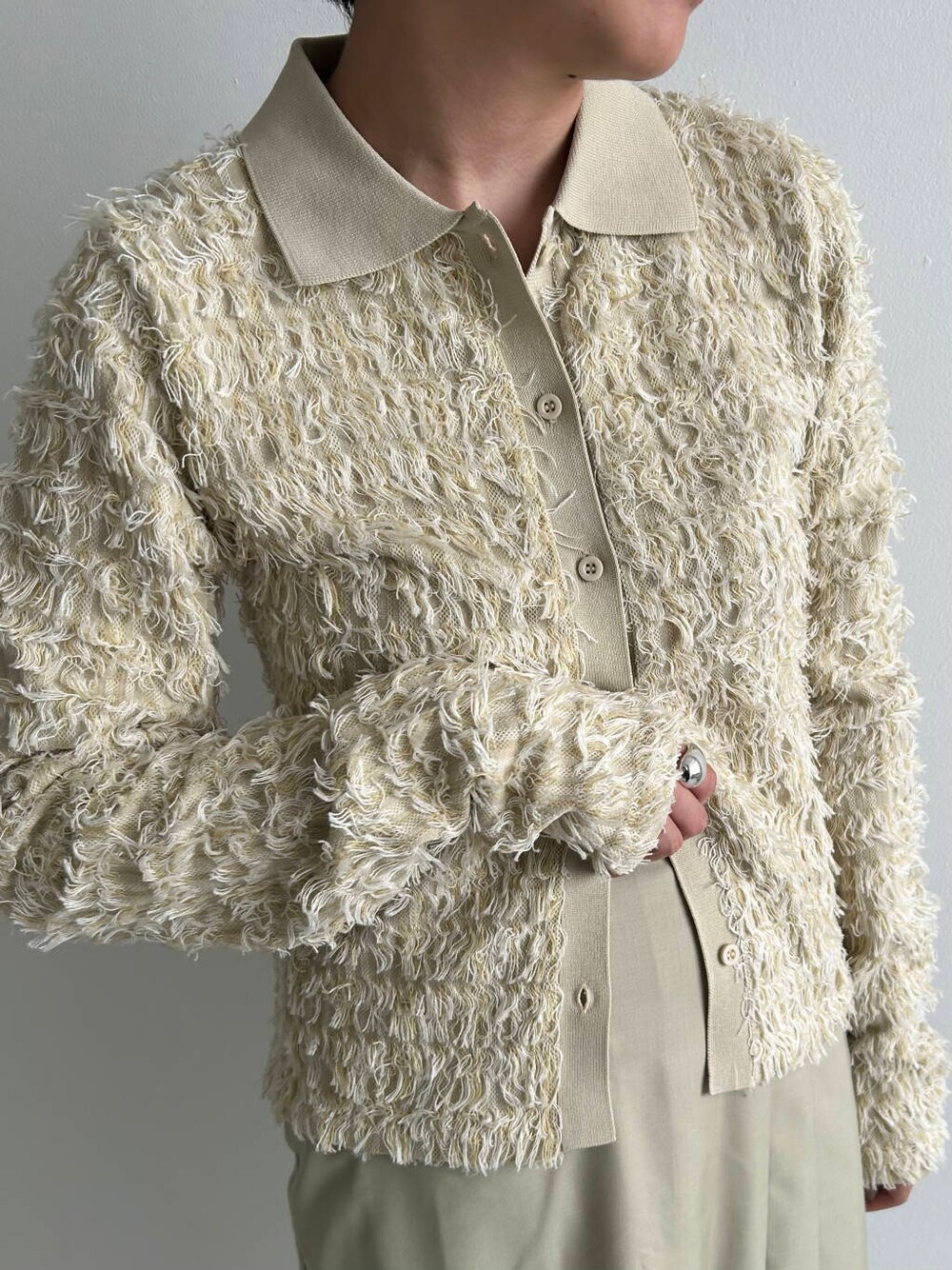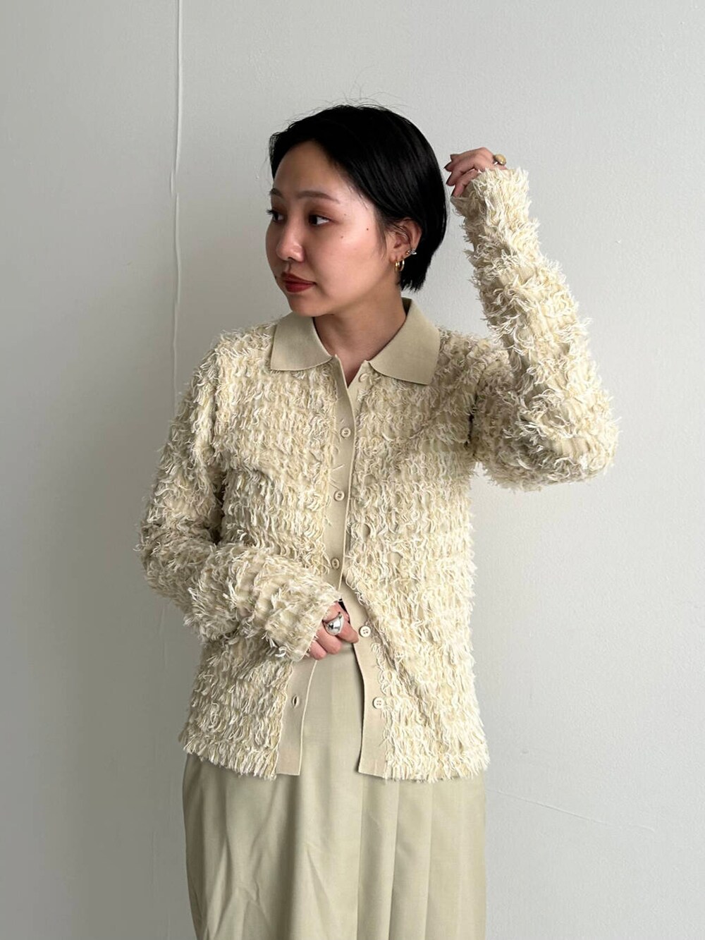 すっきり着れるサイズですが、ワシャワシャなフリンジがポイントで立体感があります◎