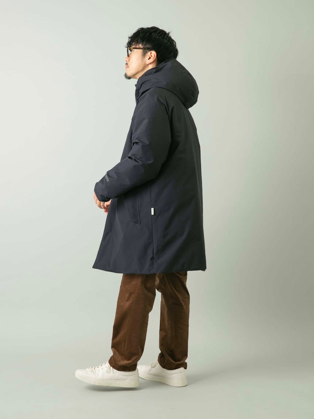 スッキリしたロングダウンにスラックス型は相性良くきれいめな印象もプラス!