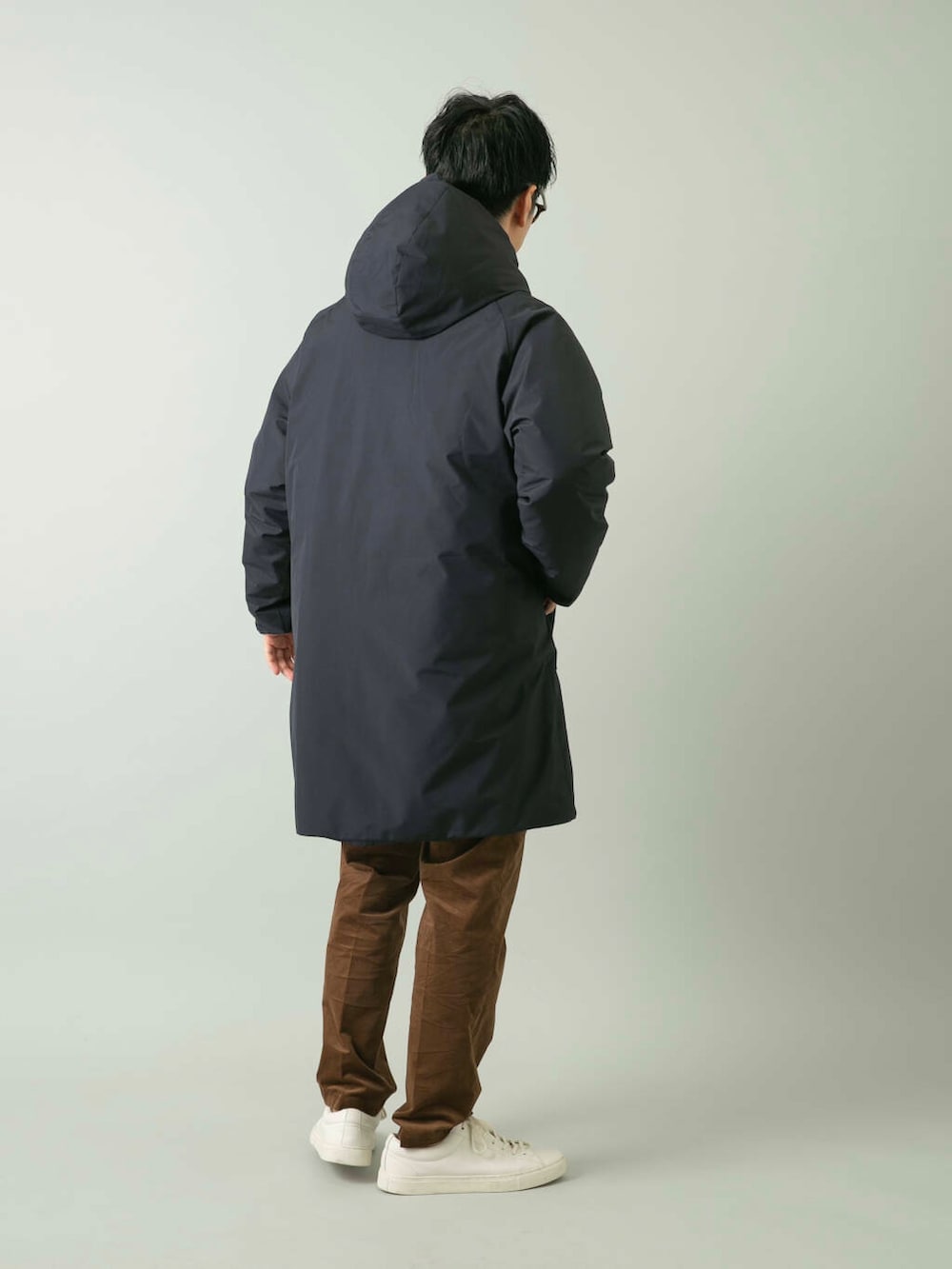 極力ボリュームを抑えたすっきりシルエットなのでワンサイズアップしても違和感なくカジュアルでも活躍
