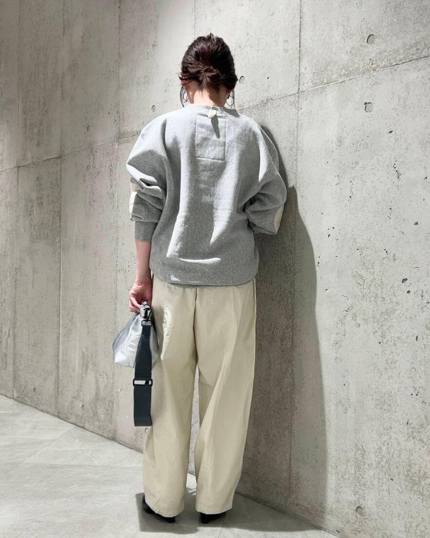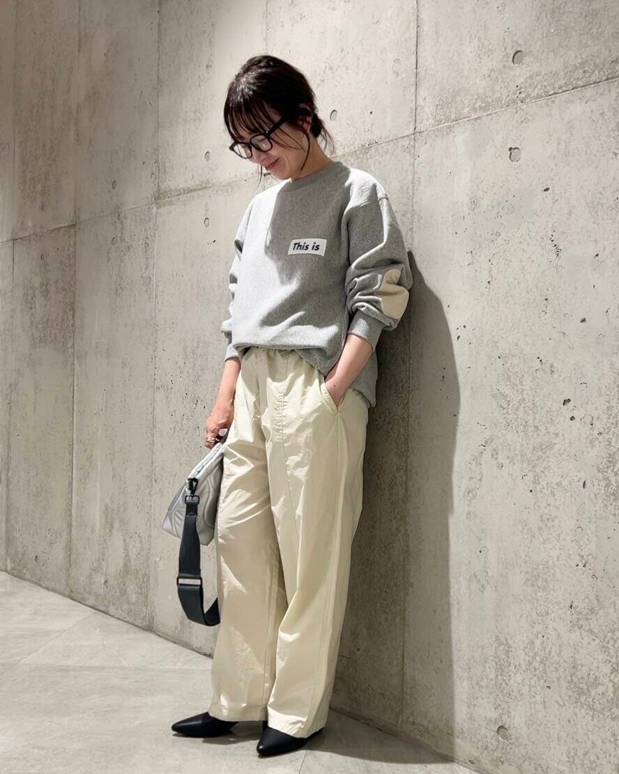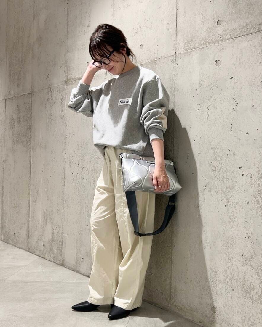 今回は、清涼感のある生地が特徴的なパンツと合わせた、大人カジュアルコーディネートです。