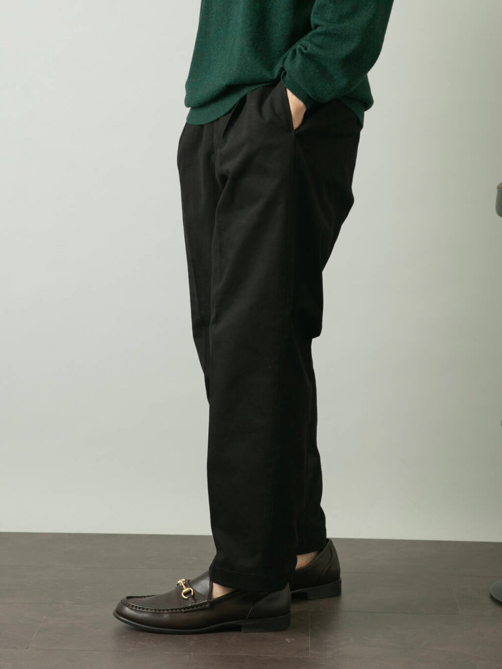 ワンサイズアップしてもトップスの存在感を損なわないきれいなシルエットです。