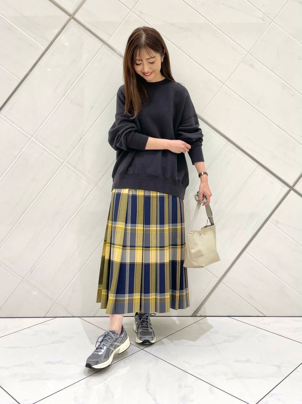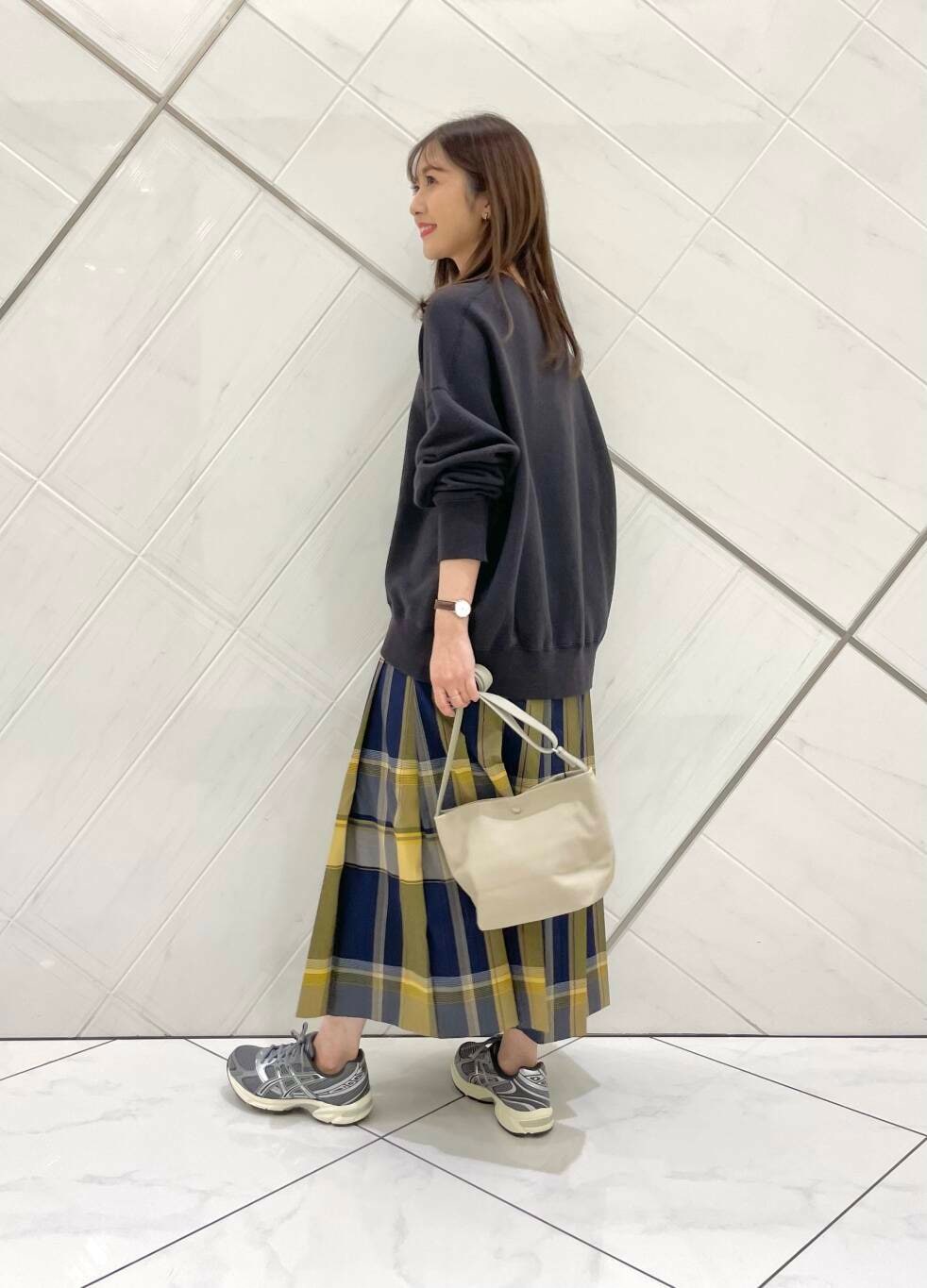 今回はチェックスカートと合わせてカジュアルにまとめてみました。