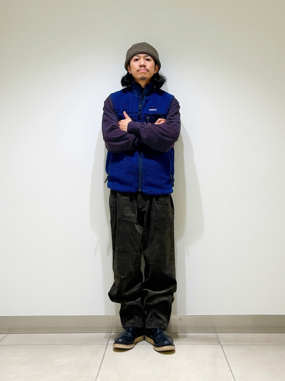 着丈は少し長めなのでロンTやスウェットだけでなく、ゆとりのあるシャツの上からでも羽織っていただけます。