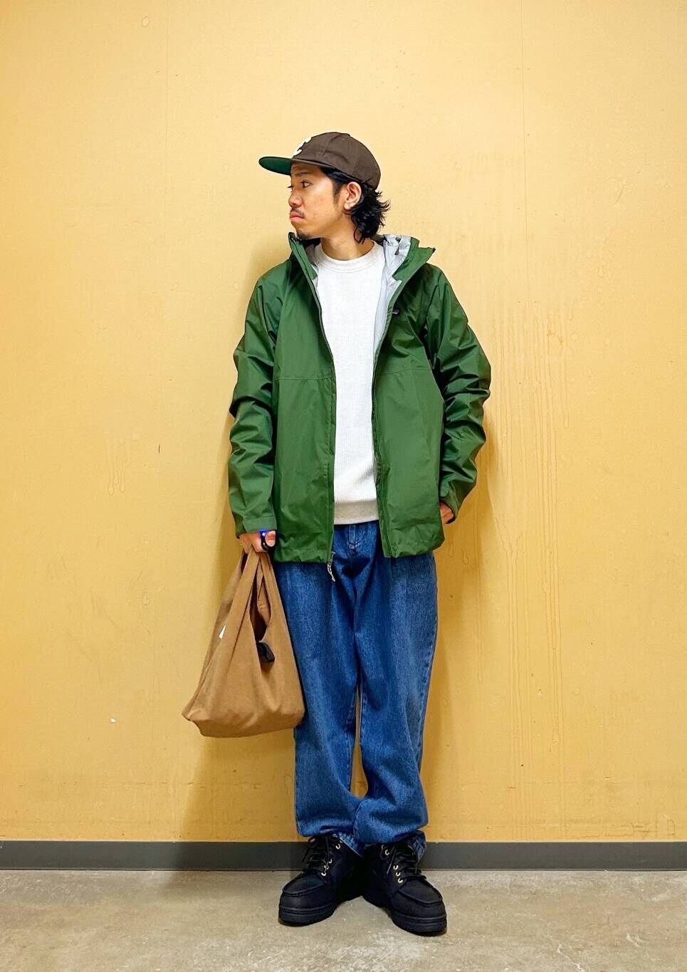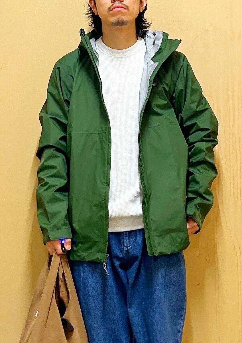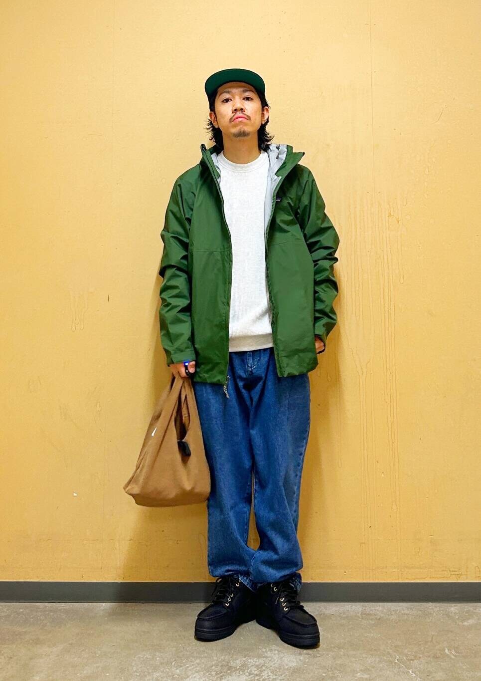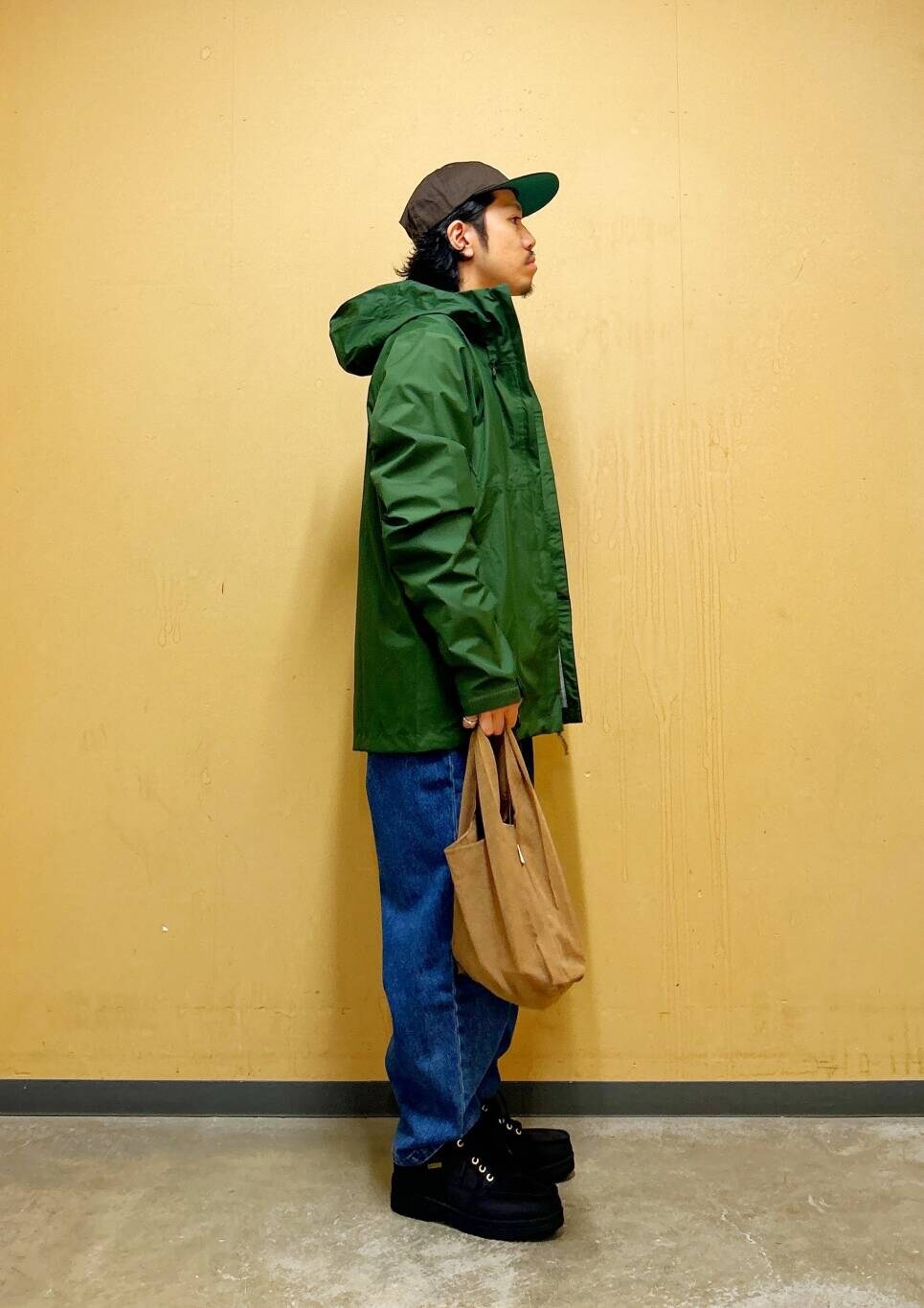 今回はpatagonia Torrentshell 3L Rain Jacketとエカルデニムトラウザーを使用したコーディネート。