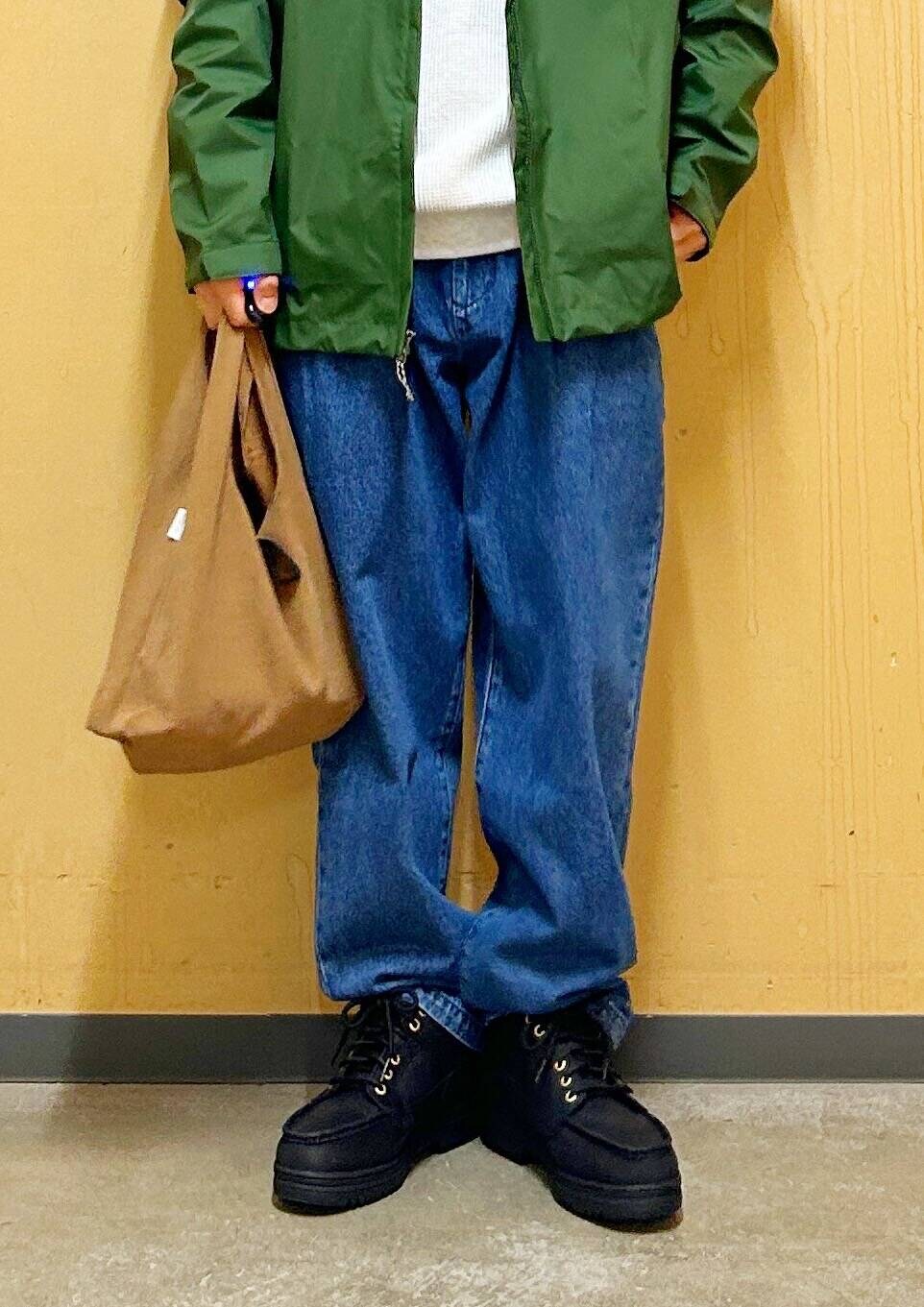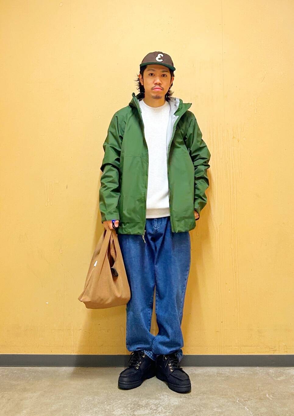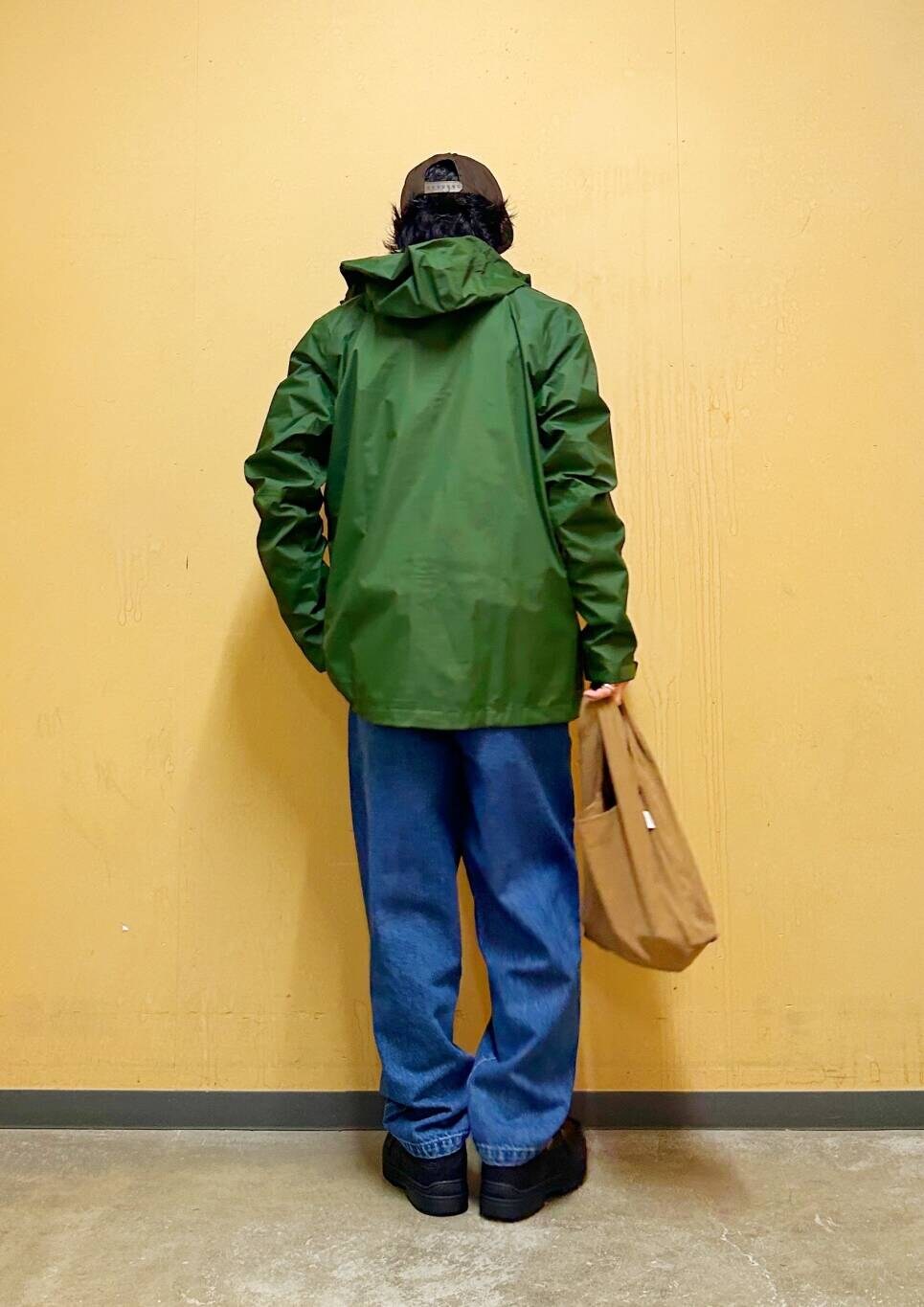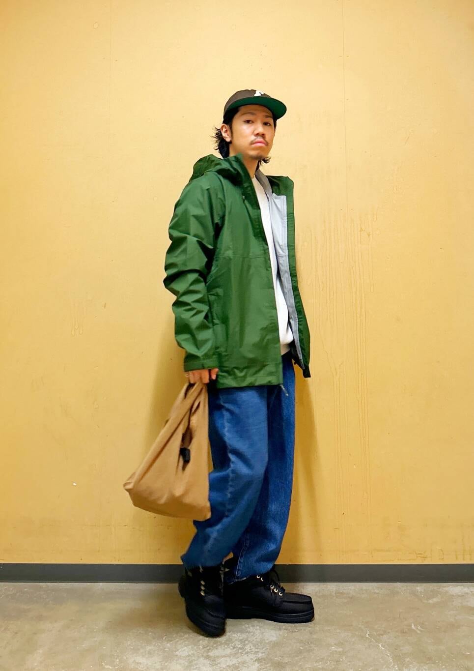 今回はpatagonia Torrentshell 3L Rain Jacketとエカルデニムトラウザーを使用したコーディネート。