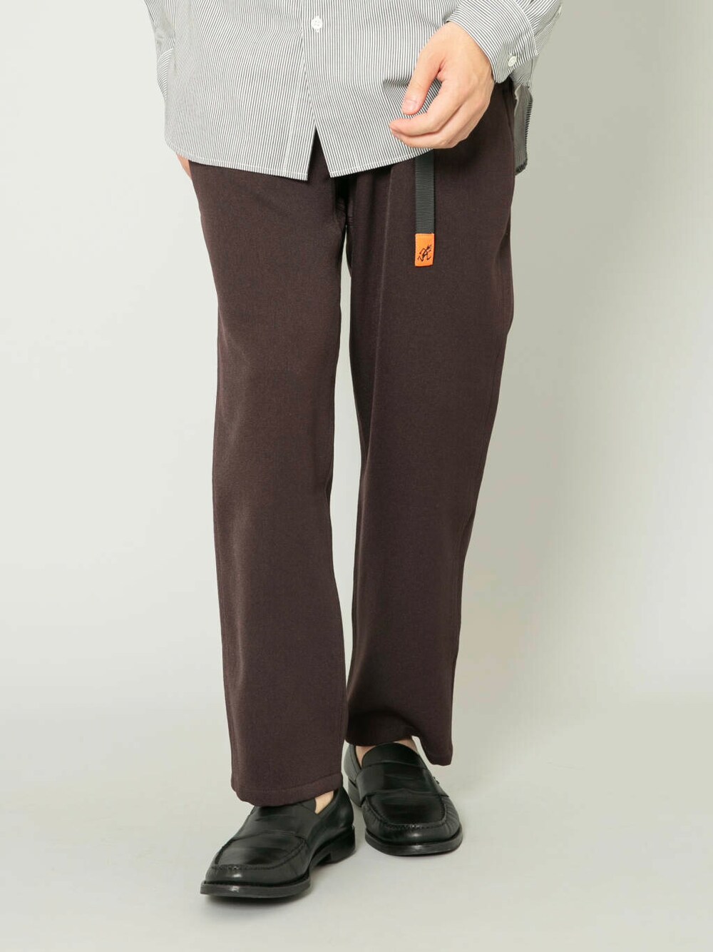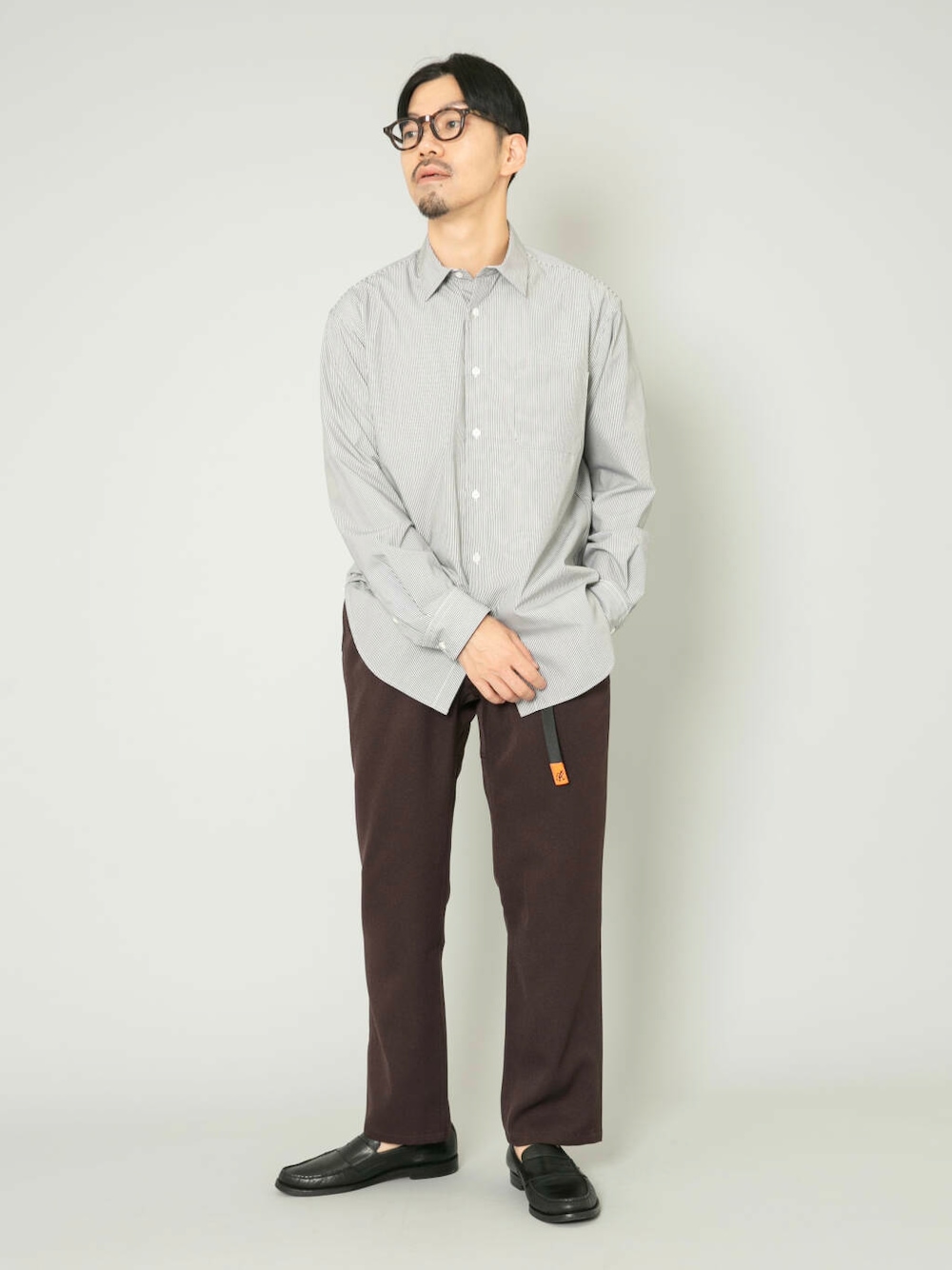 涼しさを感じるコーディネートにパンツの素材感とブラウンのカラーが季節感をアップ!!