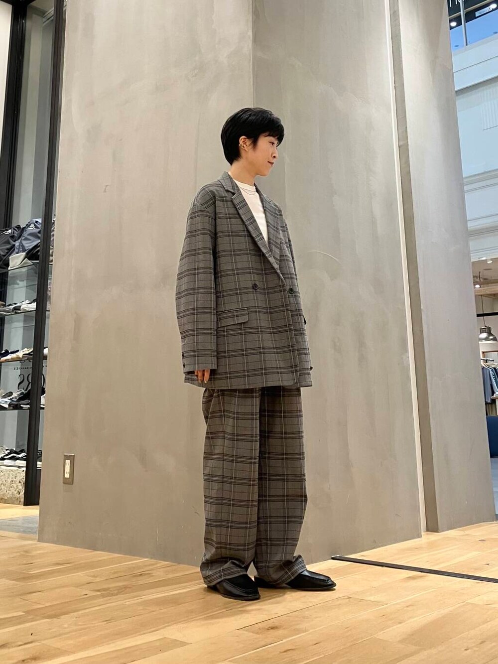 チェック柄も、ベーシックなカラーとラインも細めで柄感強くなく、ラフさや甘さもそこまで出ず合わせやすいのでおすすめです!