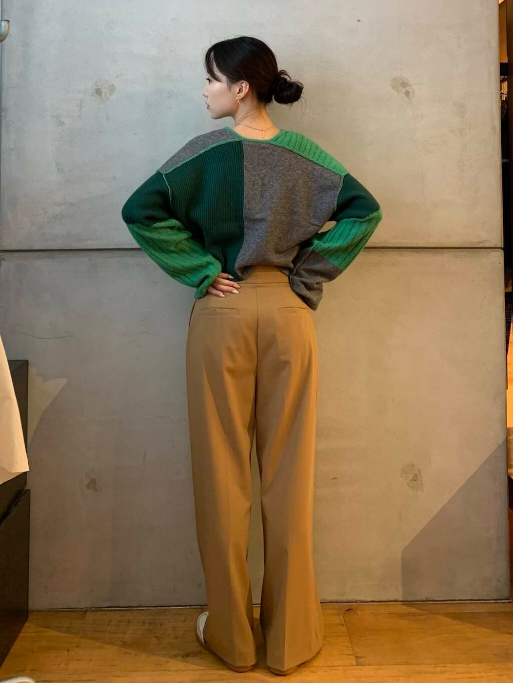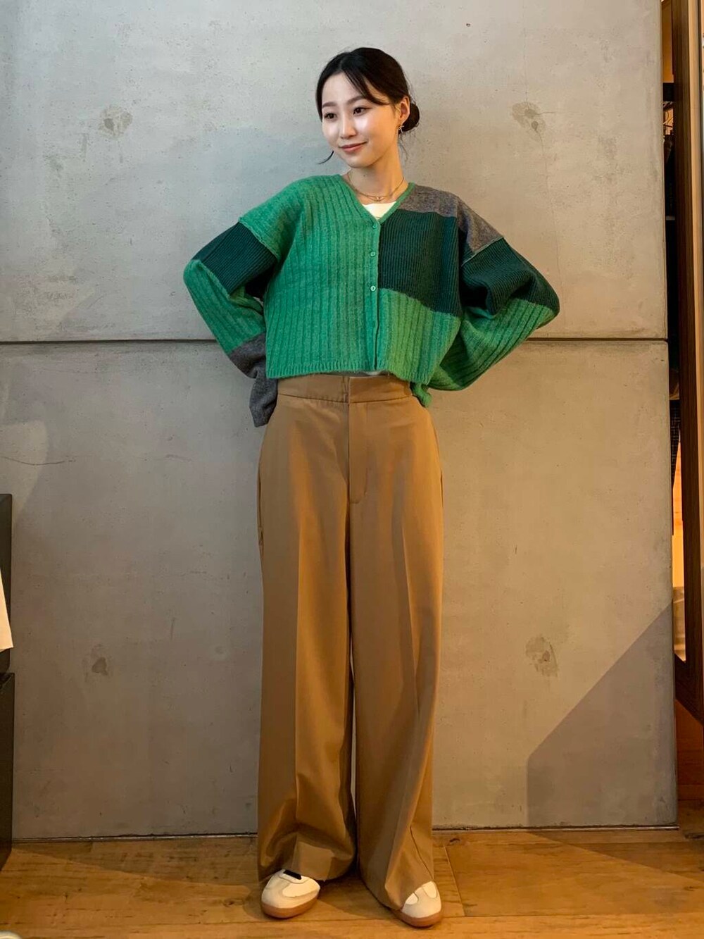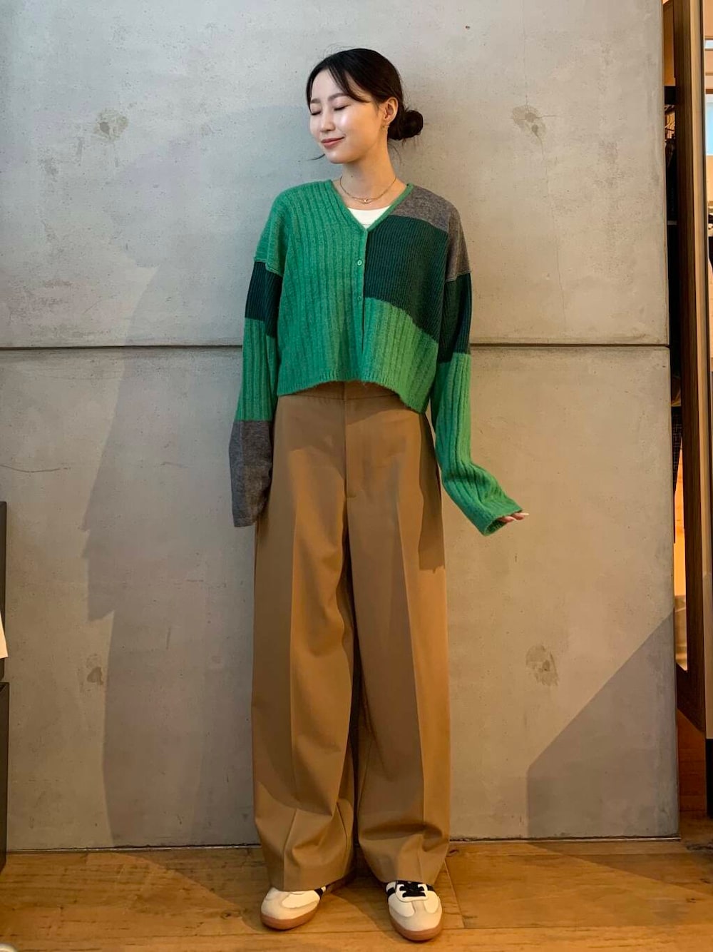 パッチワークのカーディガン、1枚着るだけで様になりますね💚💚