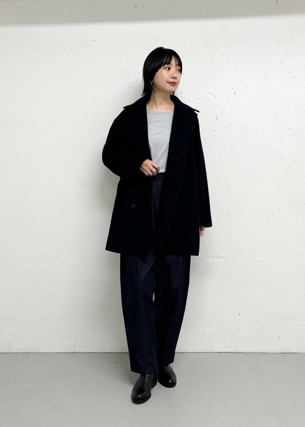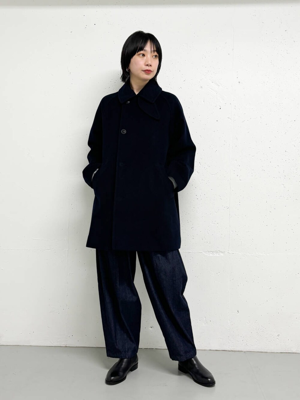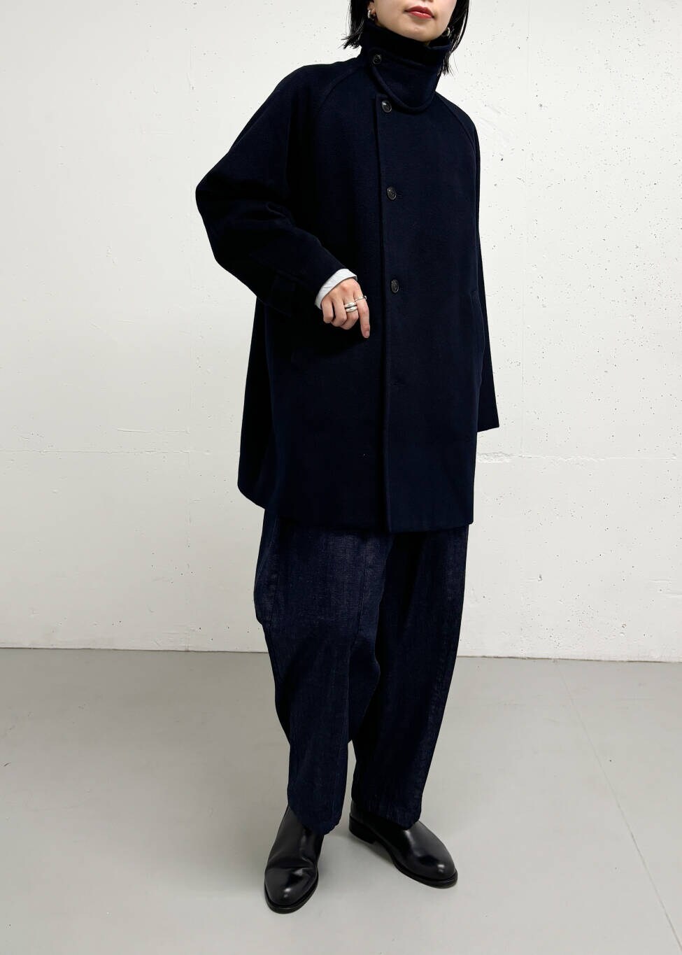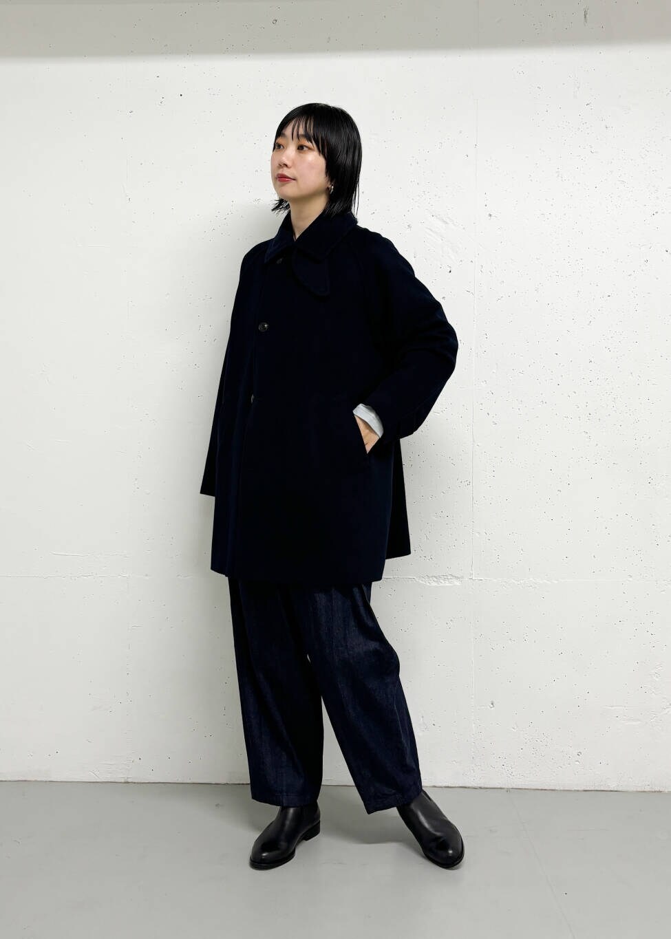 Pコートの雰囲気を取り入れつつ、ボタンは1列にして着やすいデザインに仕上げています。