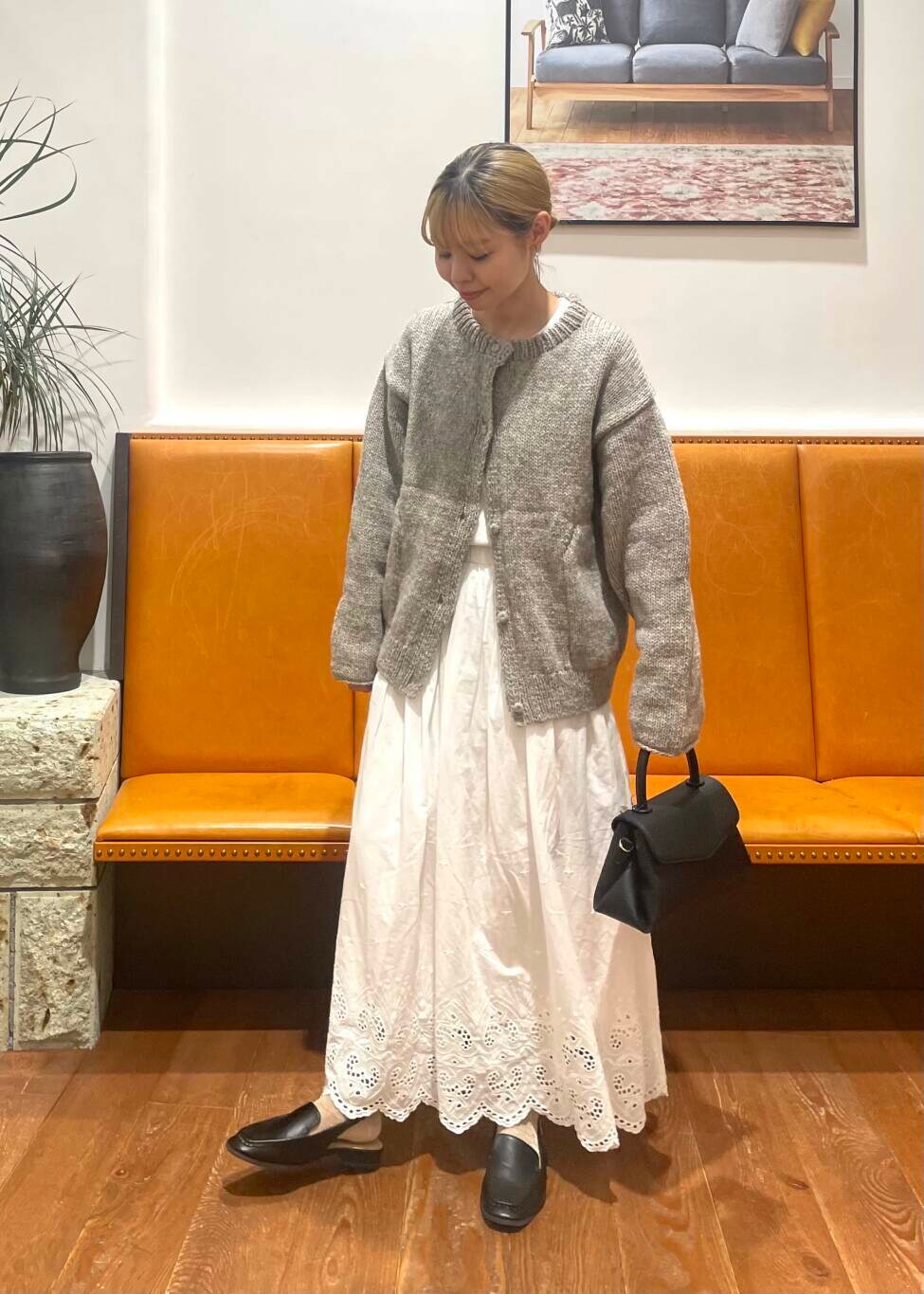 今回はかぐれのペルーニットカーディガンに合わせてコーデを組みました!
